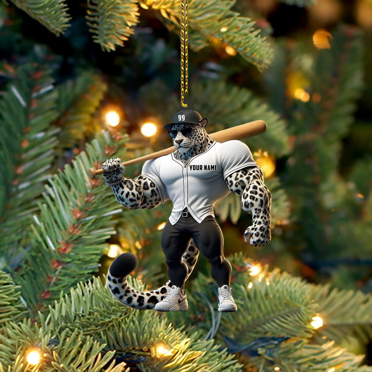 Baseball Leopard Christmas Ornament, Personalized Ornament
