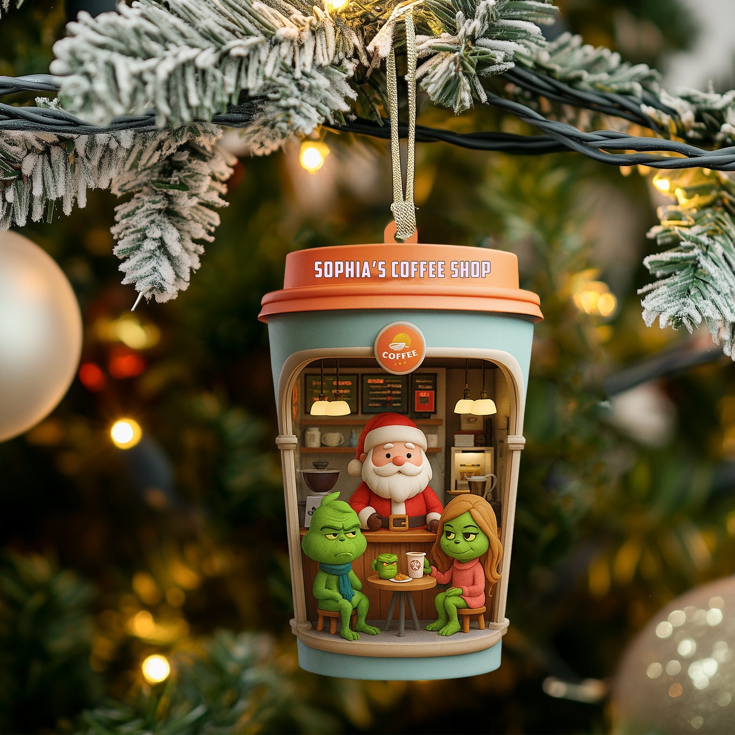 Christmas Coffee Shop, Home Decor, Christmas Ornament, Personalized Ornament