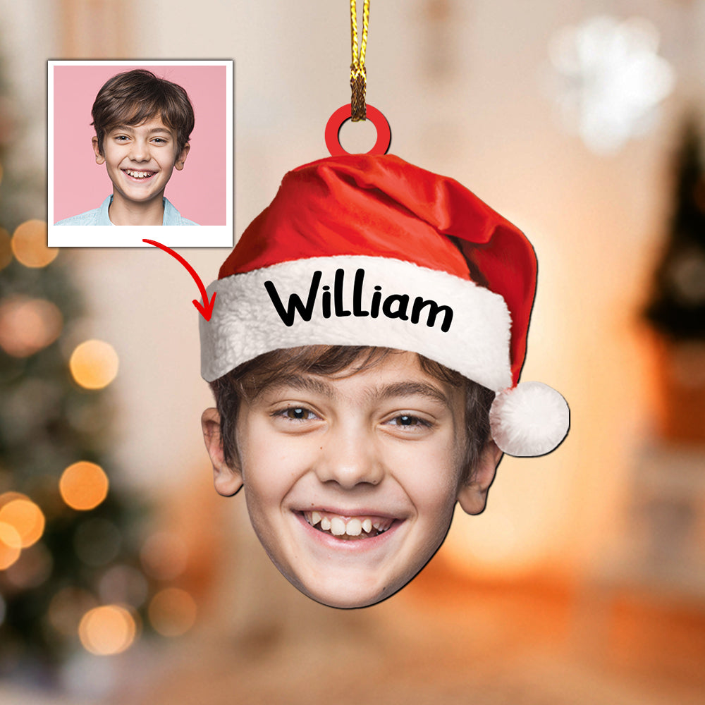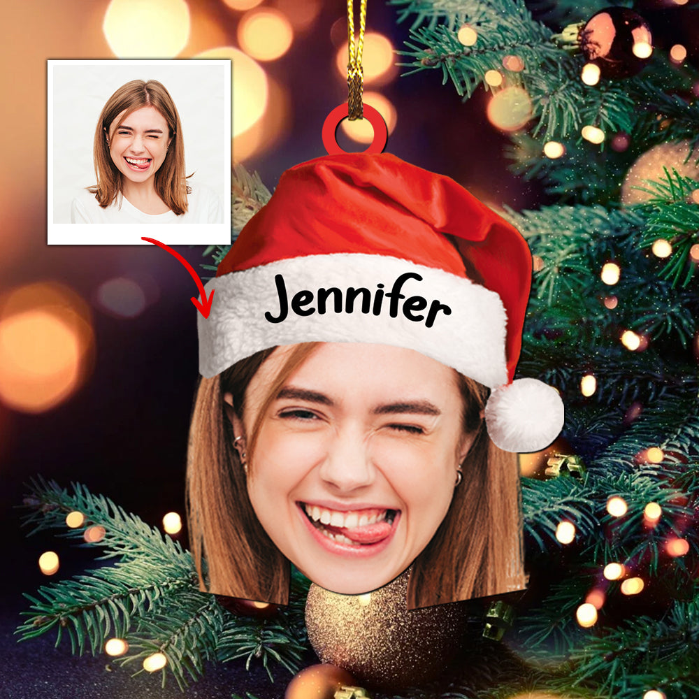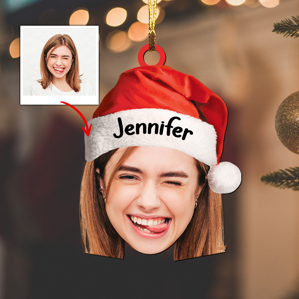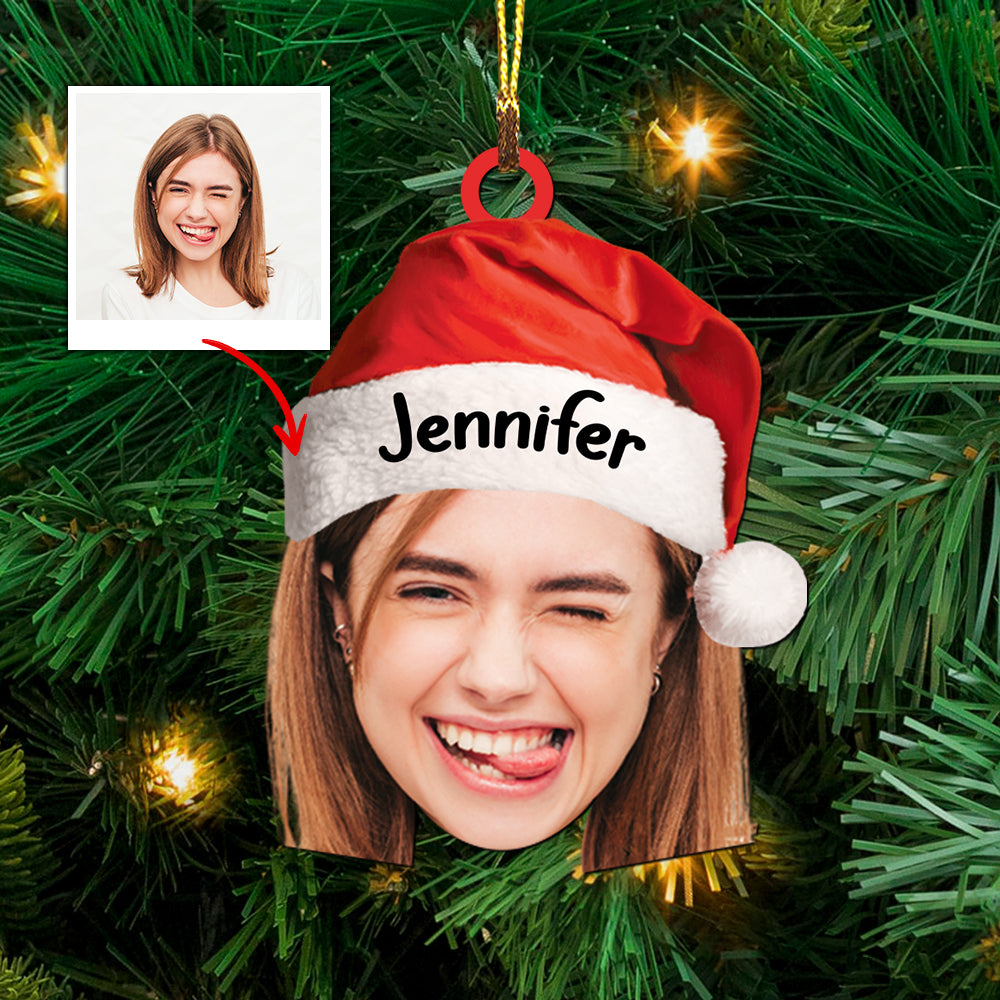 Christmas Hat - Christmas Gift For Family, Custom Photo And Name - Personalized Acrylic Ornament