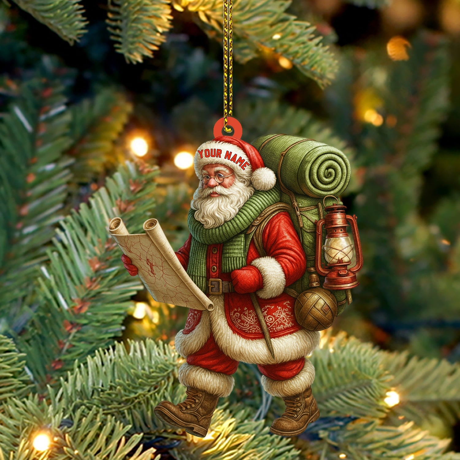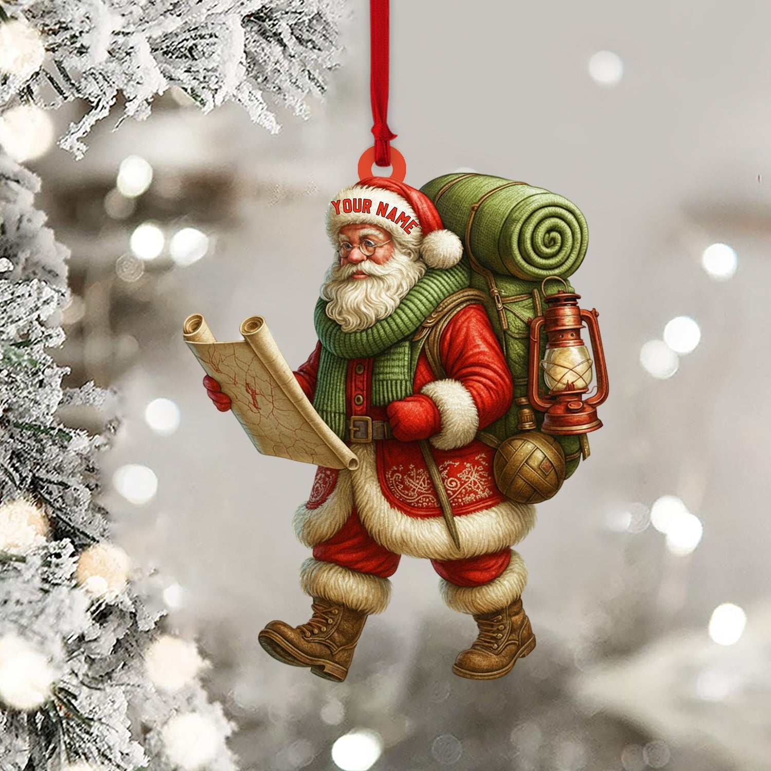 Christmas Hiking Santa, Home Decor, Christmas Ornament, Personalized Ornament
