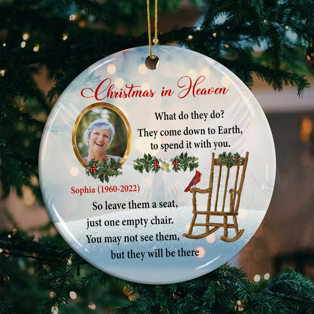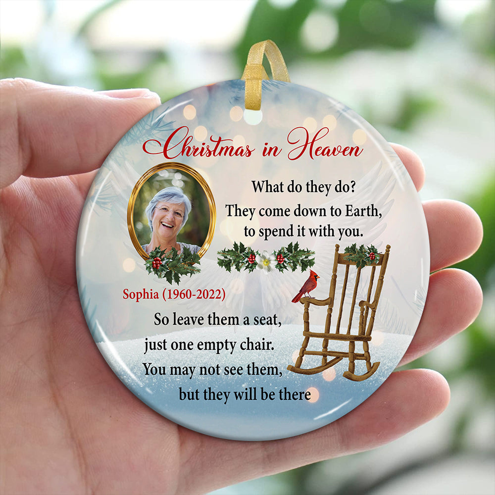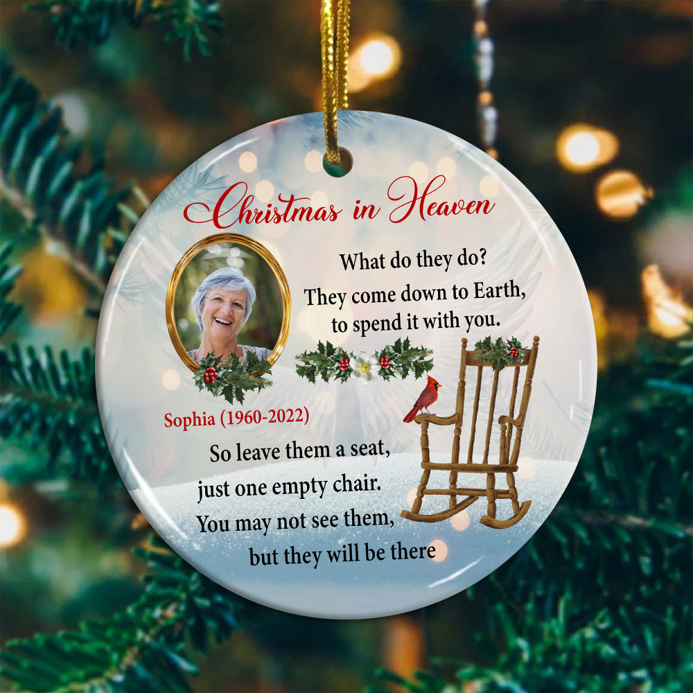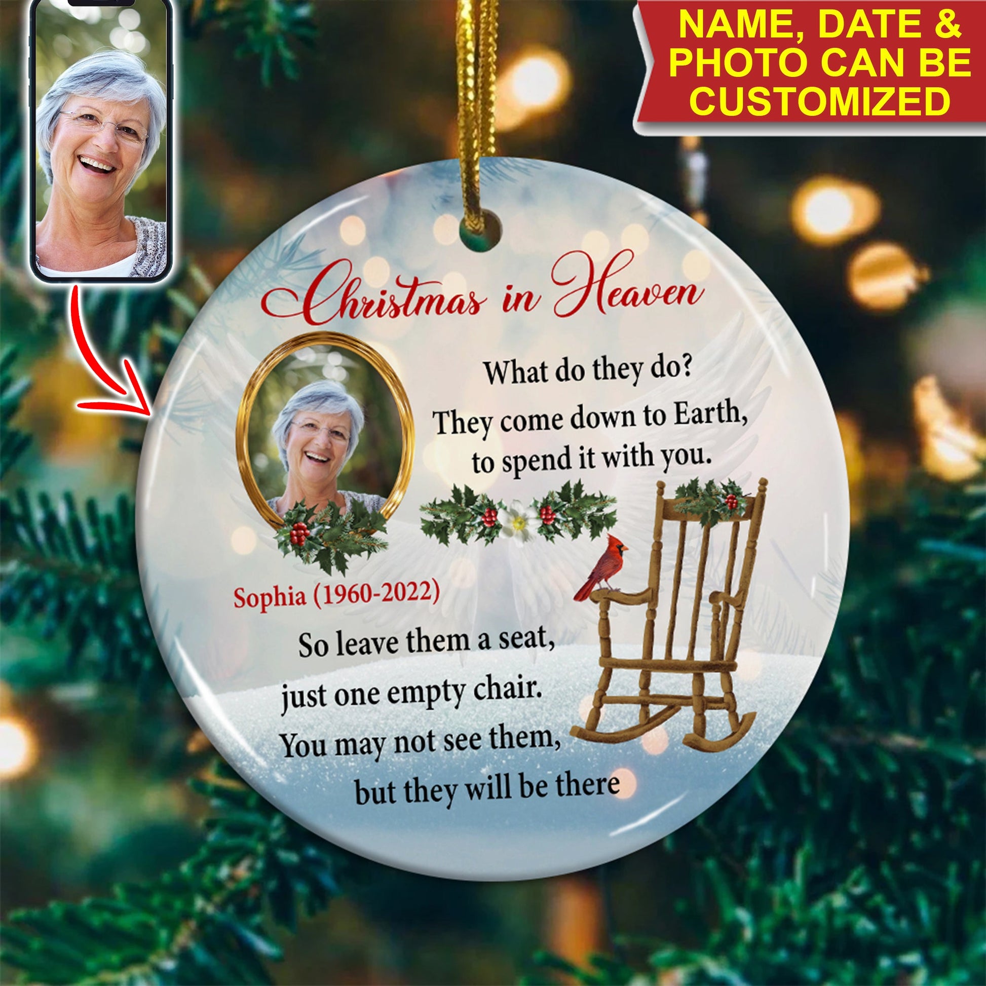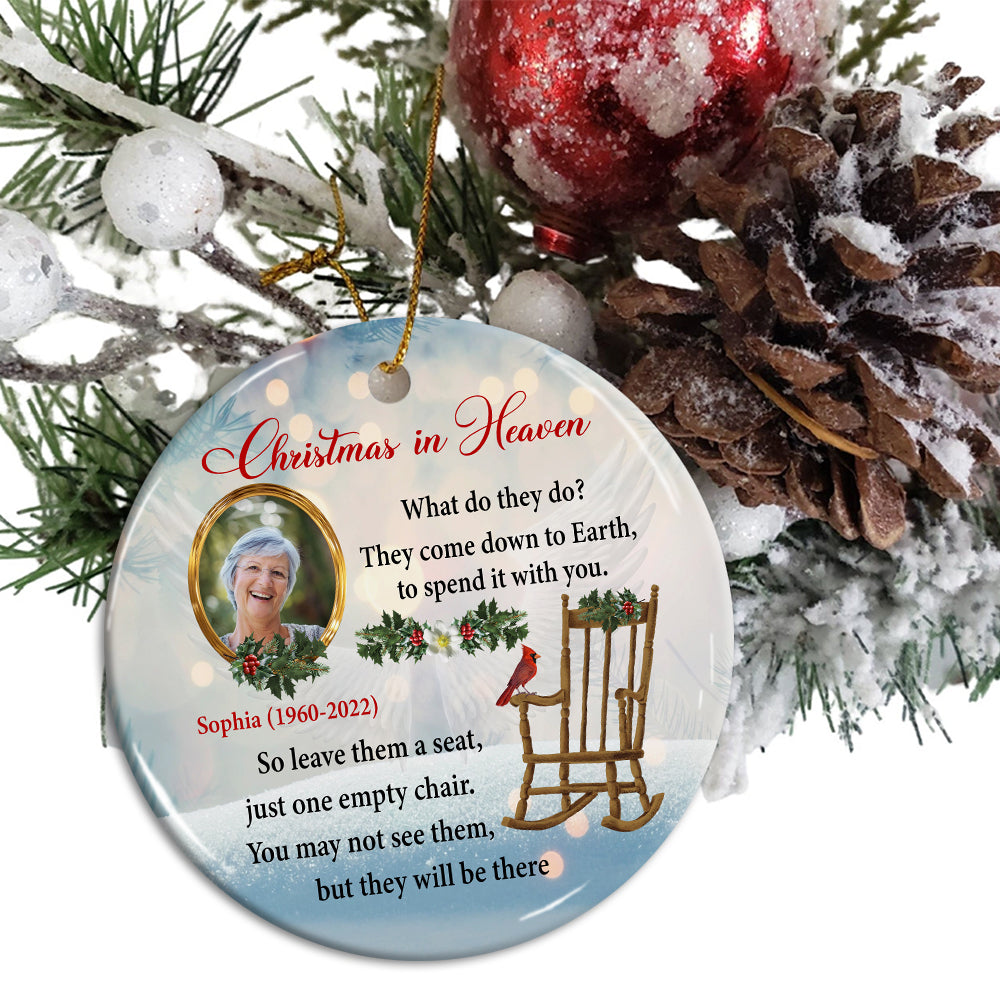 Christmas In Heaven , Custom Photo And Text- Personalized Ceramic Ornament - Gift For Christmas, Gift For Family, Memorial Gift