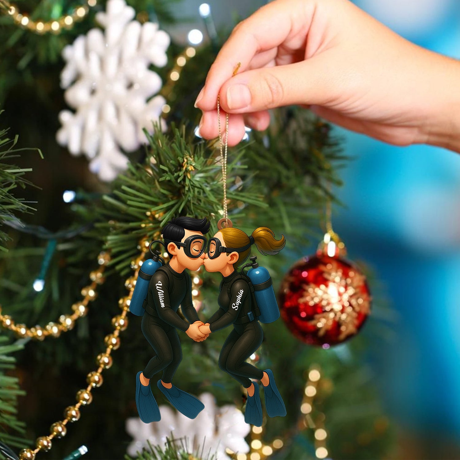 Couple Diving Home Decor, Christmas Ornament, Personalized Ornament