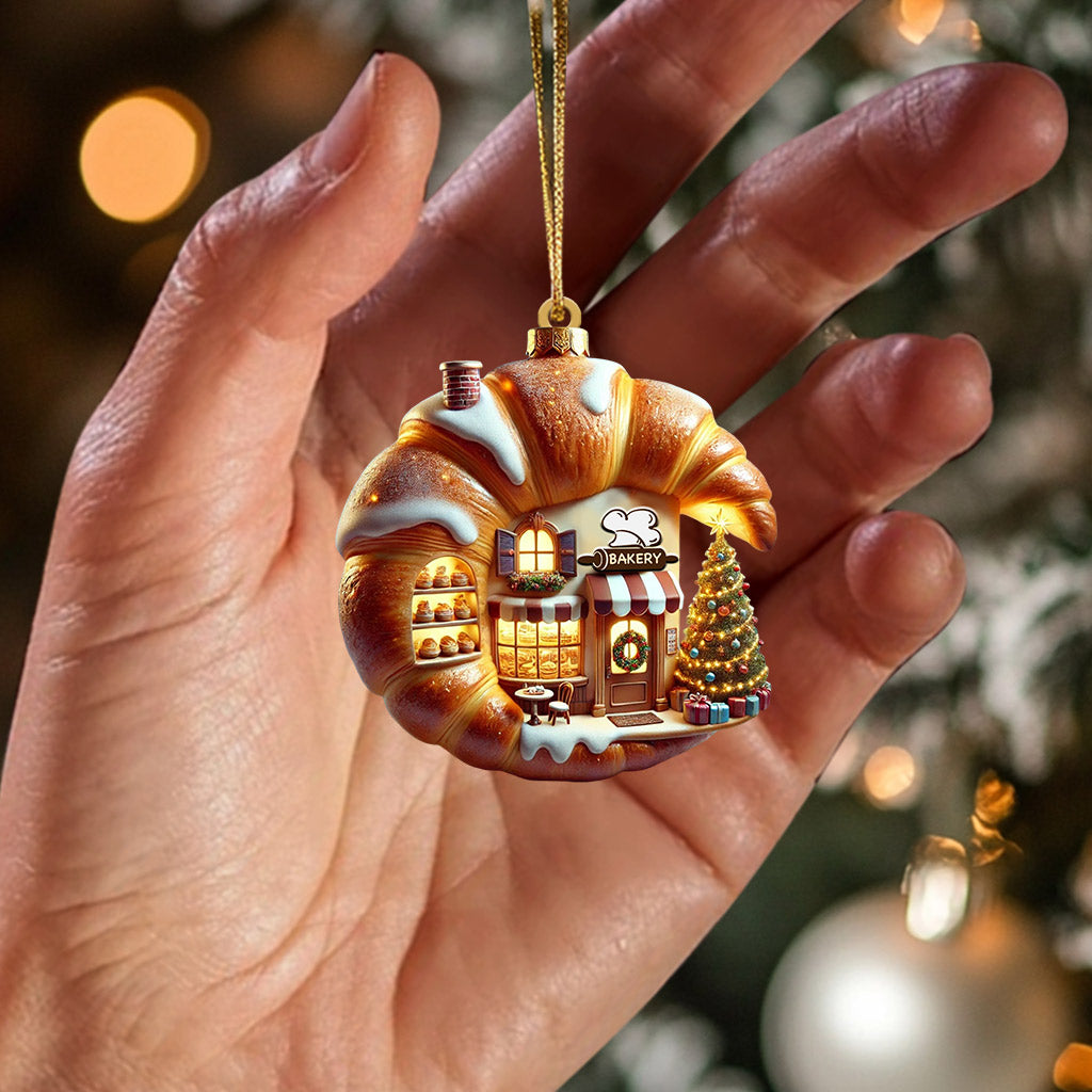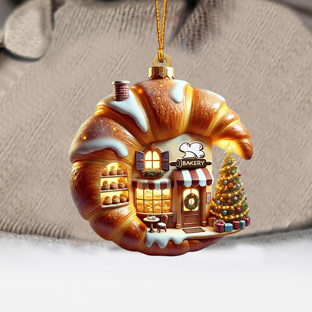Croissant Shop Home Decor Christmas Ornament, Personalized Ornament