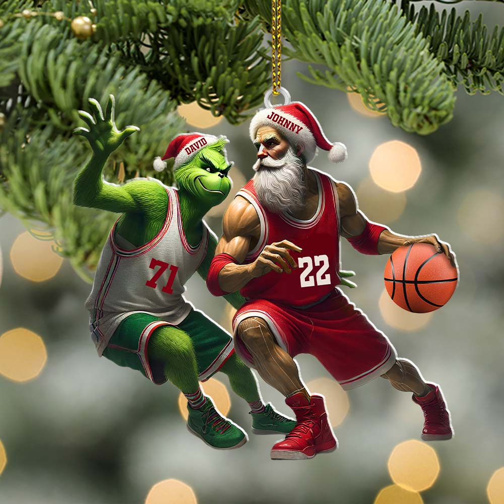 Custom Name and Number Santa and Grinch Basketball Ornament, Christmas Gift for Basketball Lover