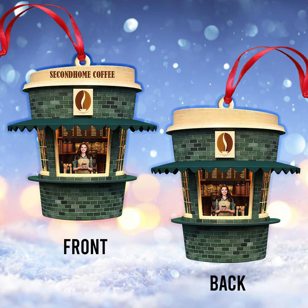 Custom Name and Photo Coffee Shop Ornament, Coffee Love Christmas Gift