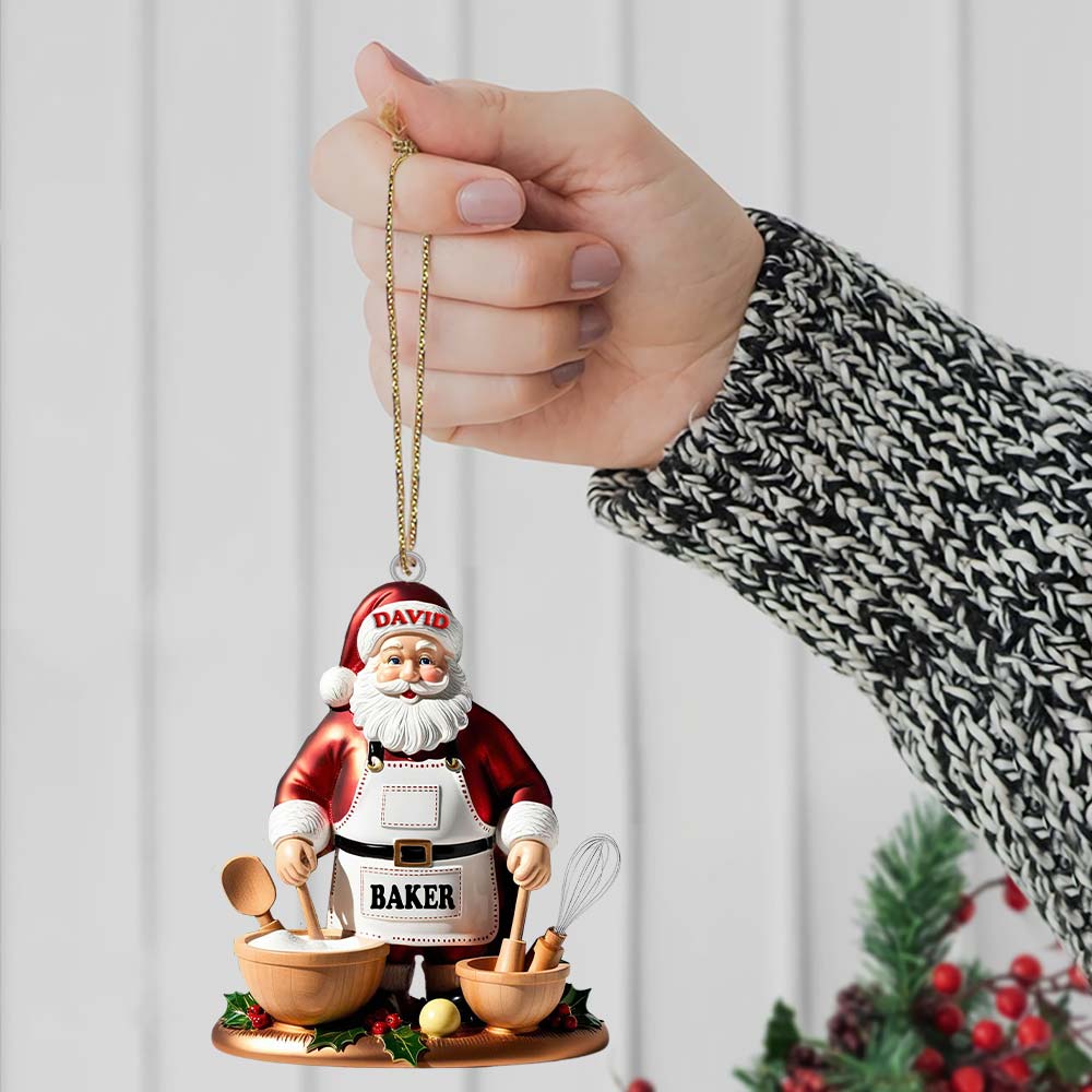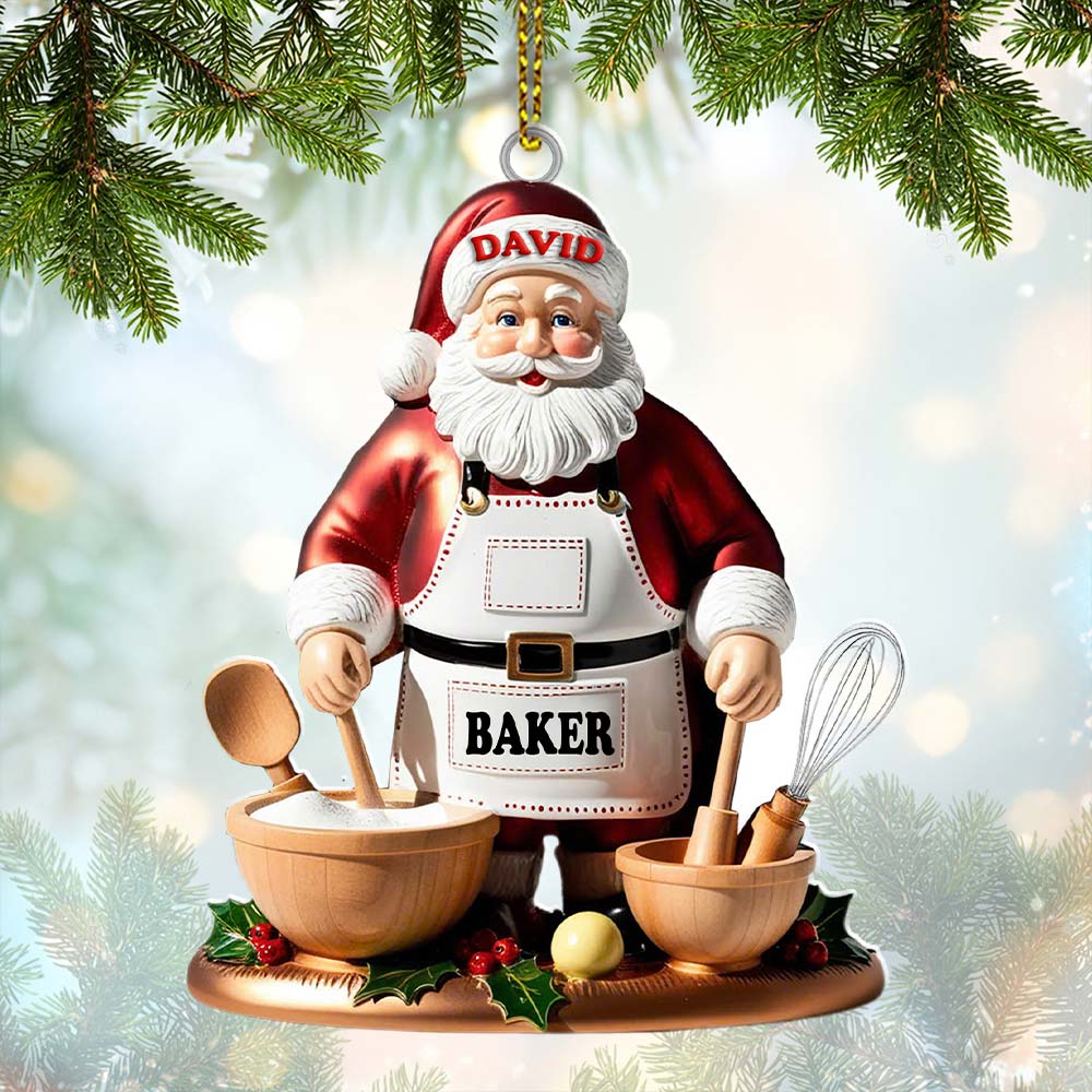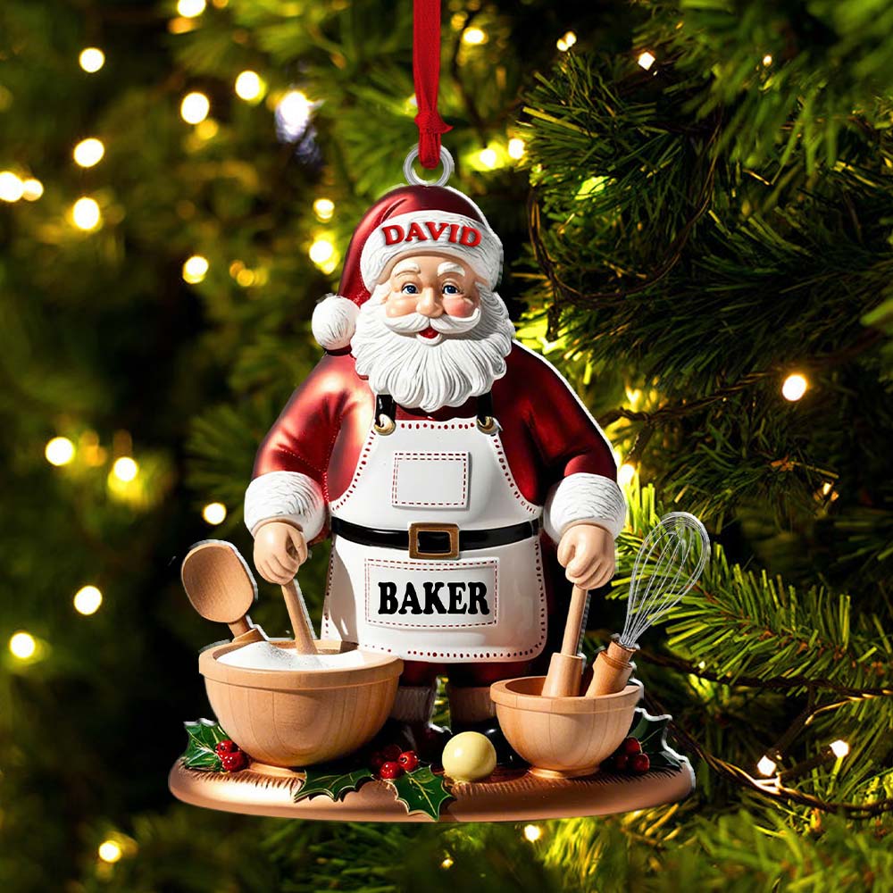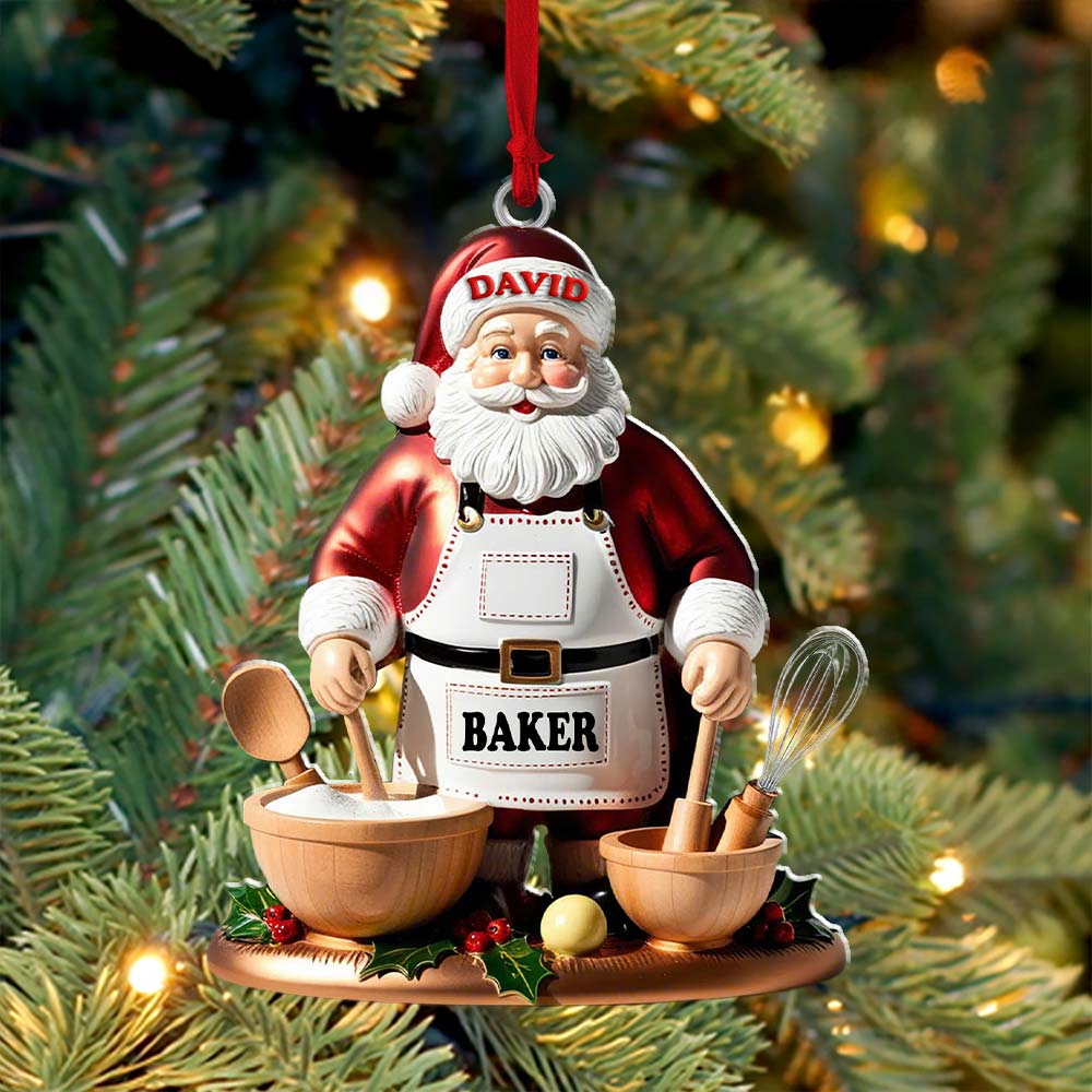 Custom Name Baking Santa Ornament, Christmas Gift for Baker