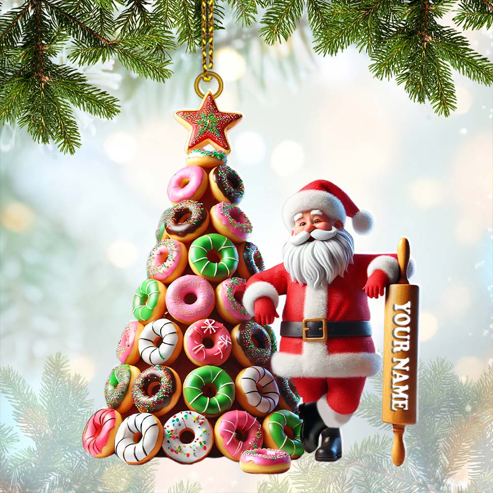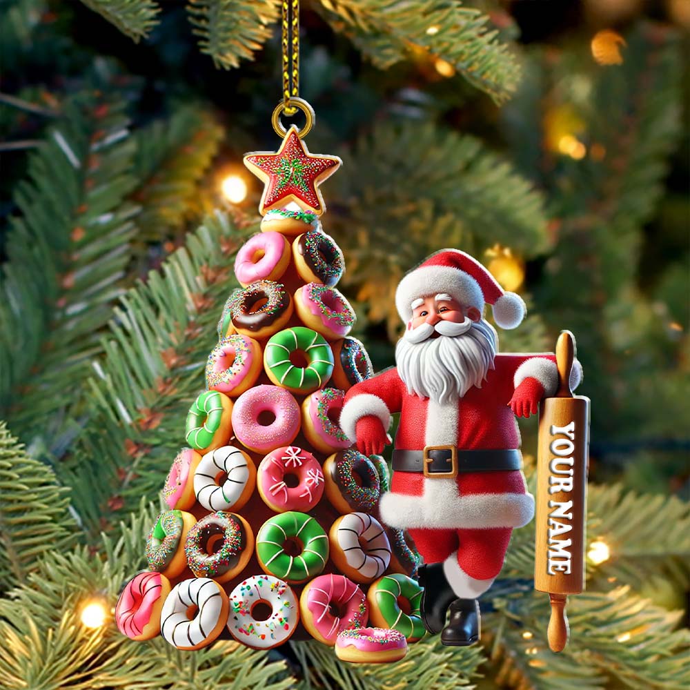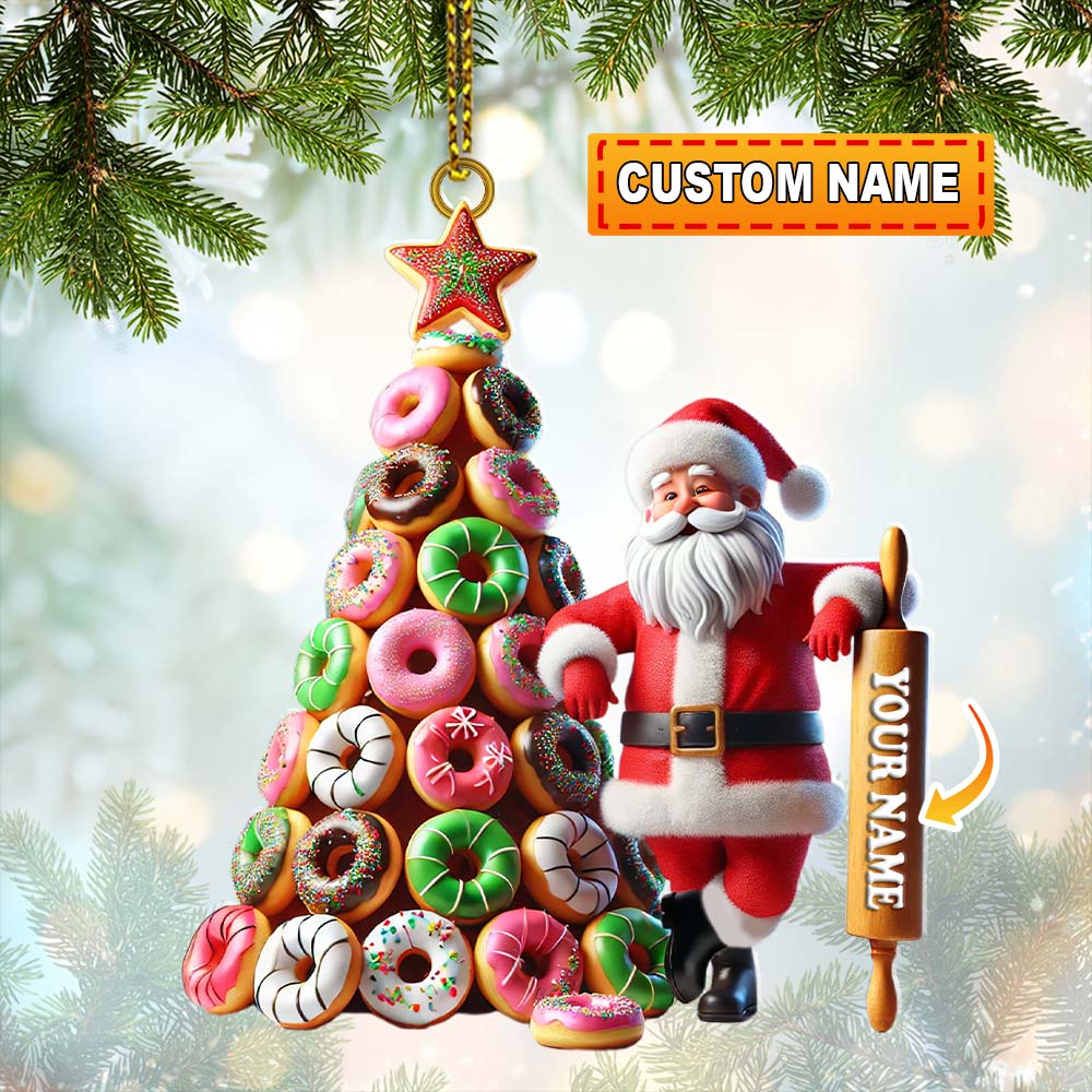 Custom Name Baking Santa Ornament, Christmas Gift for Baker