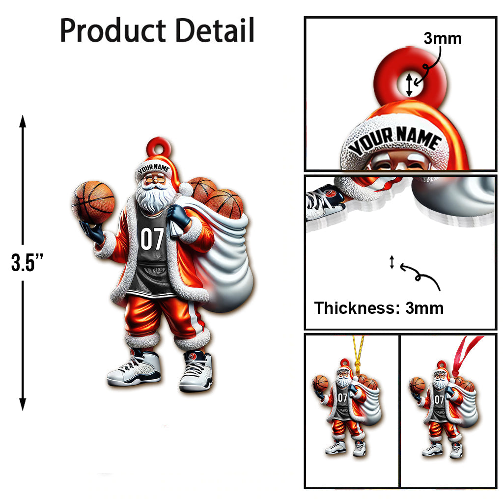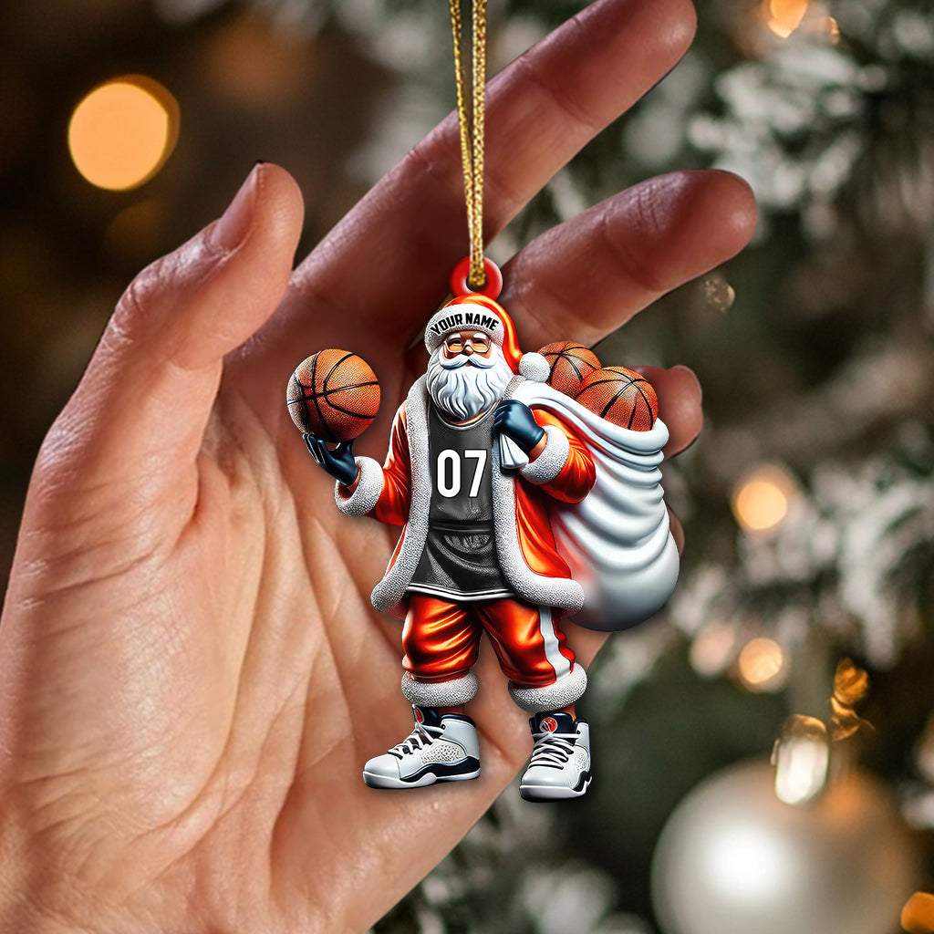 Custom Name Basketball Santa Ornament, Basketball Lover Christmas Gift