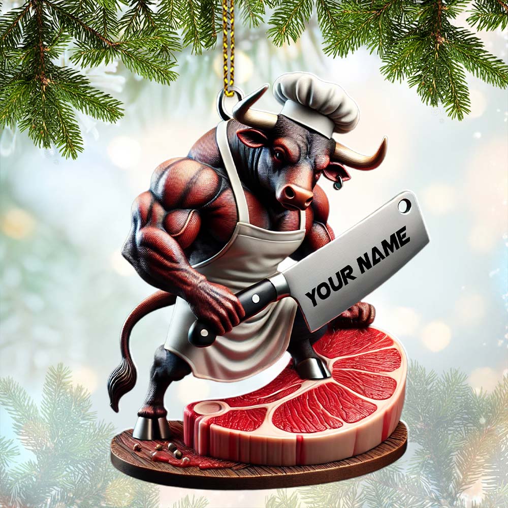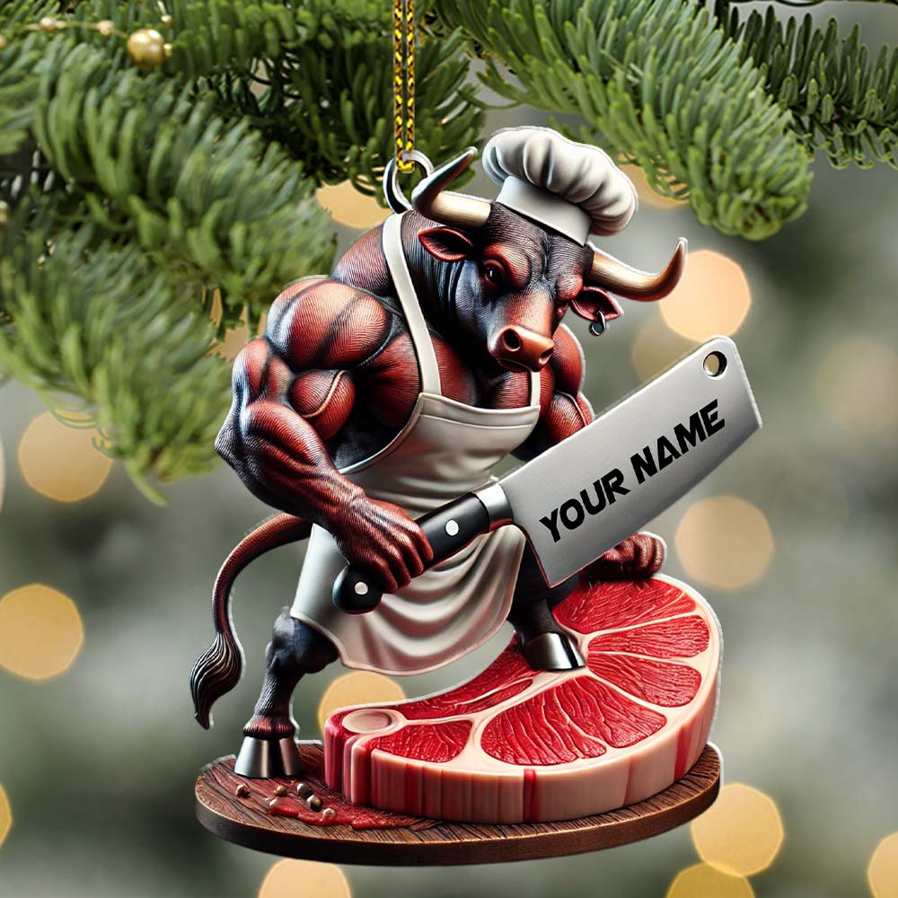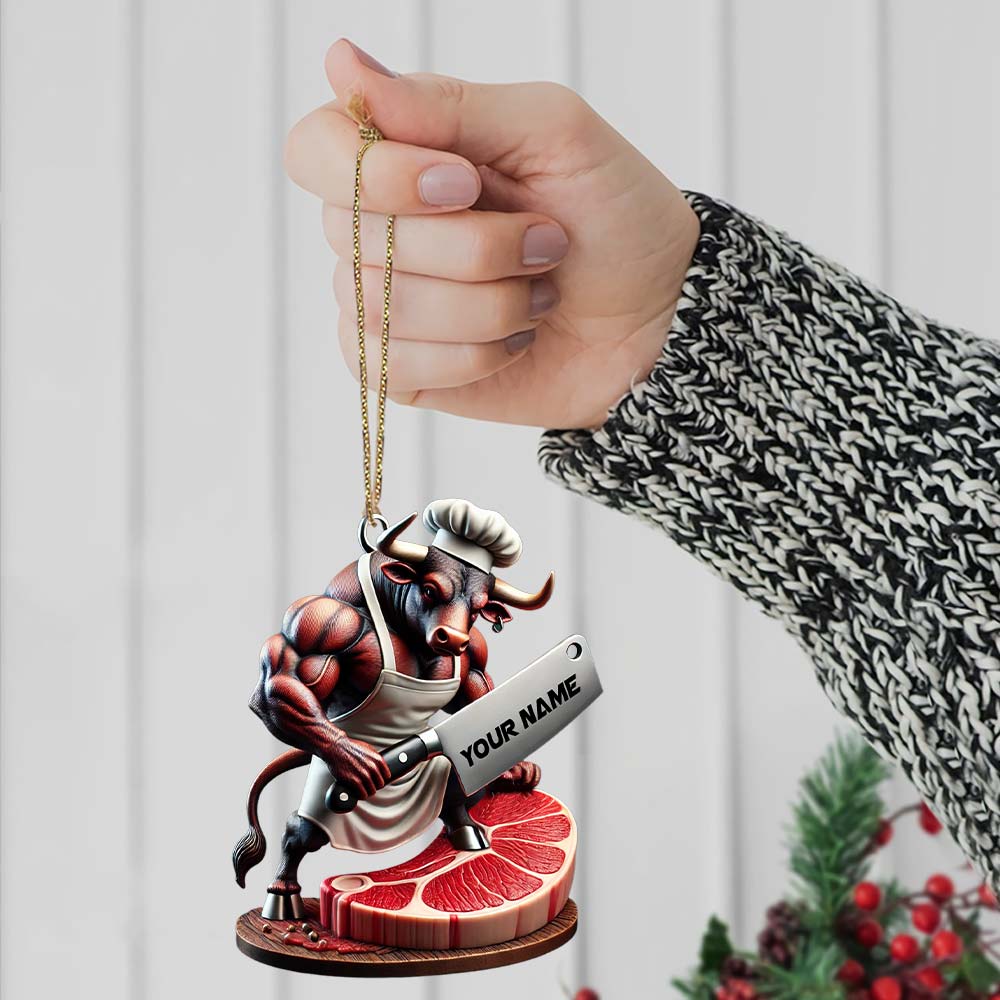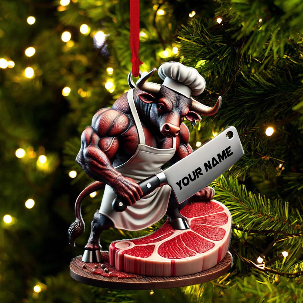 Custom Name Butcher Ornament, Butcher Shop Christmas Gift Decoration