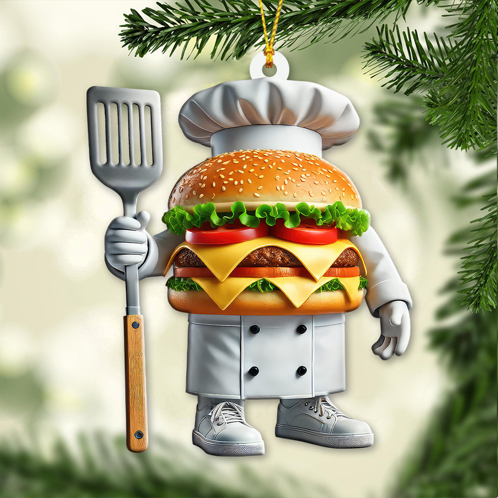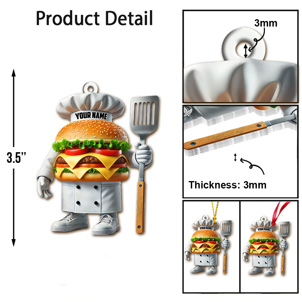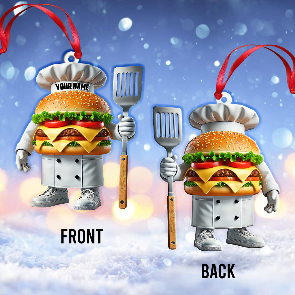 Custom Name Chef Santa Ornament, Christmas Gift for Cooking Lover