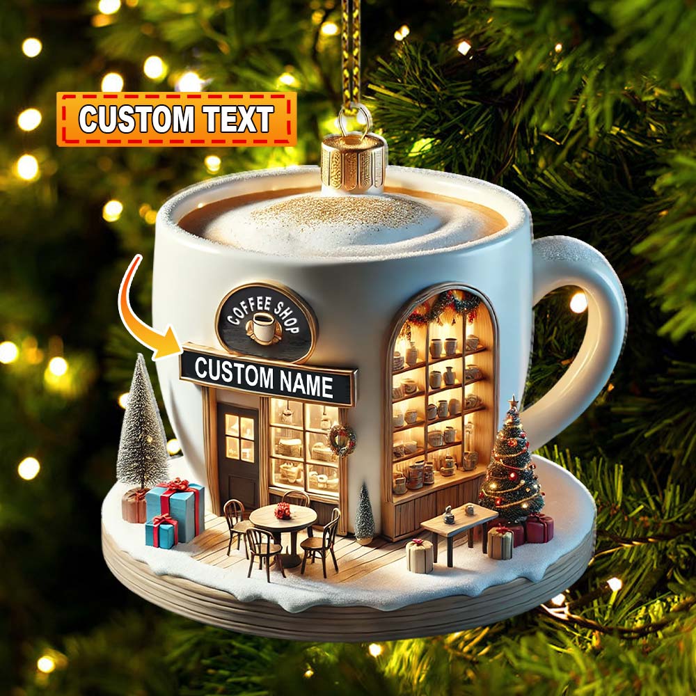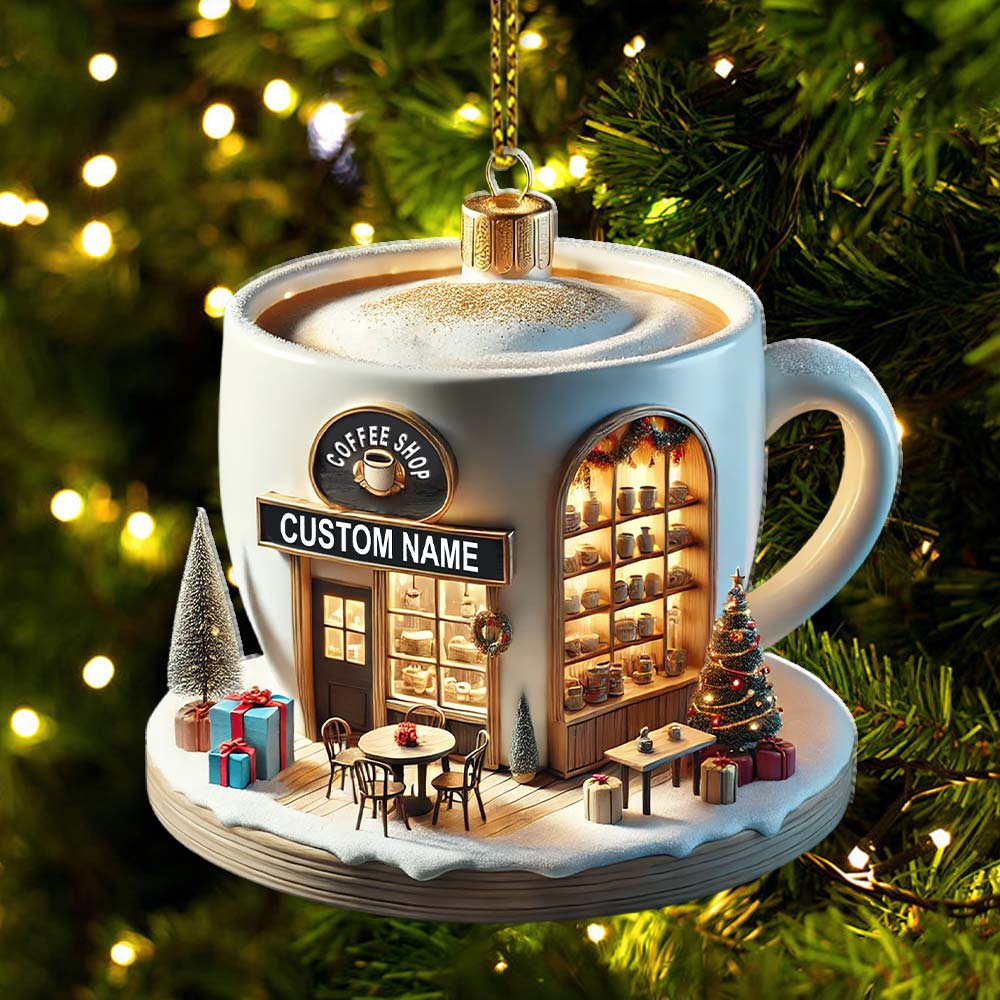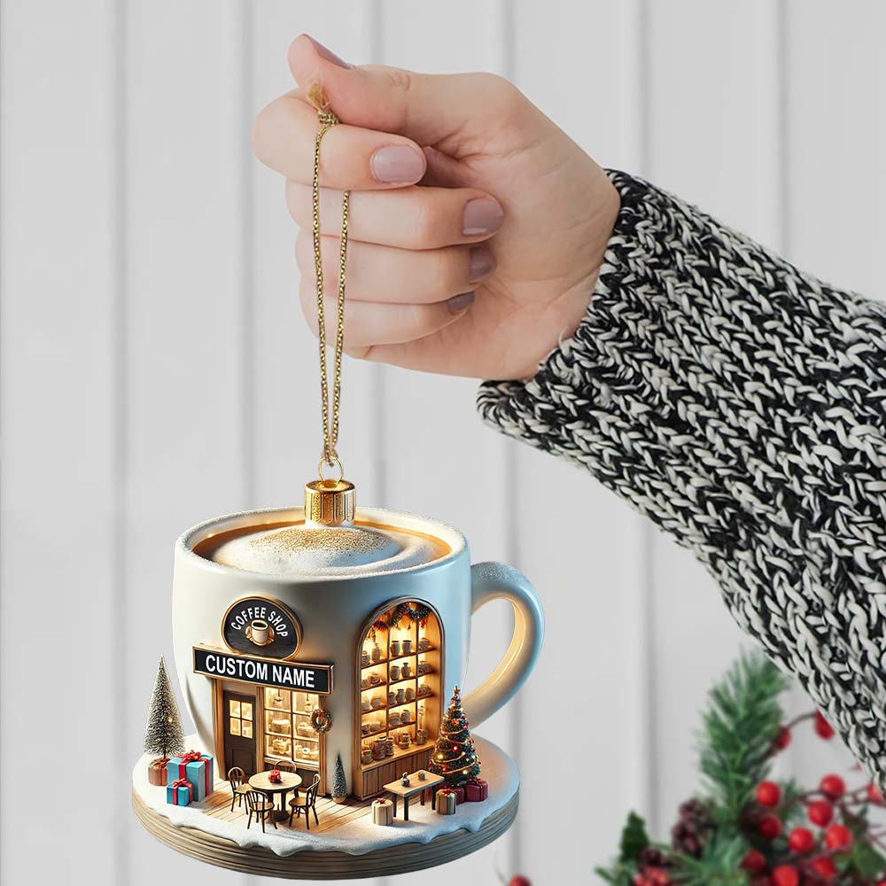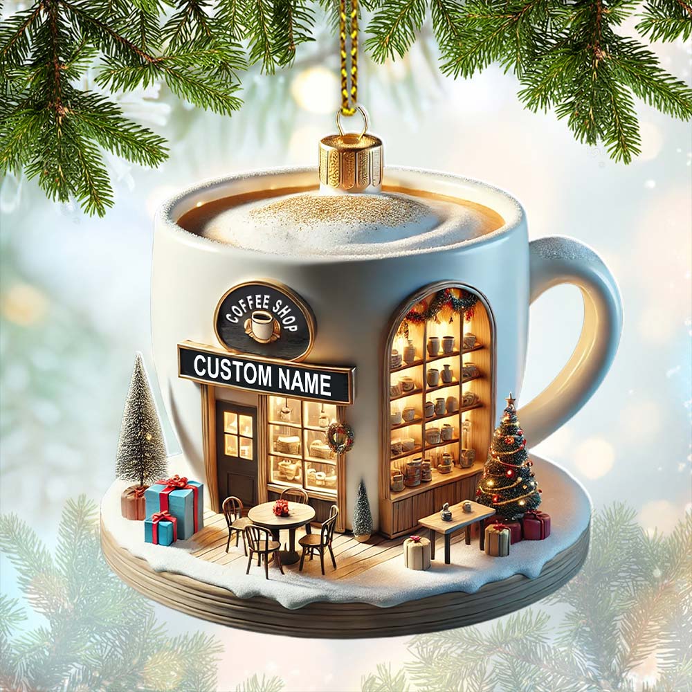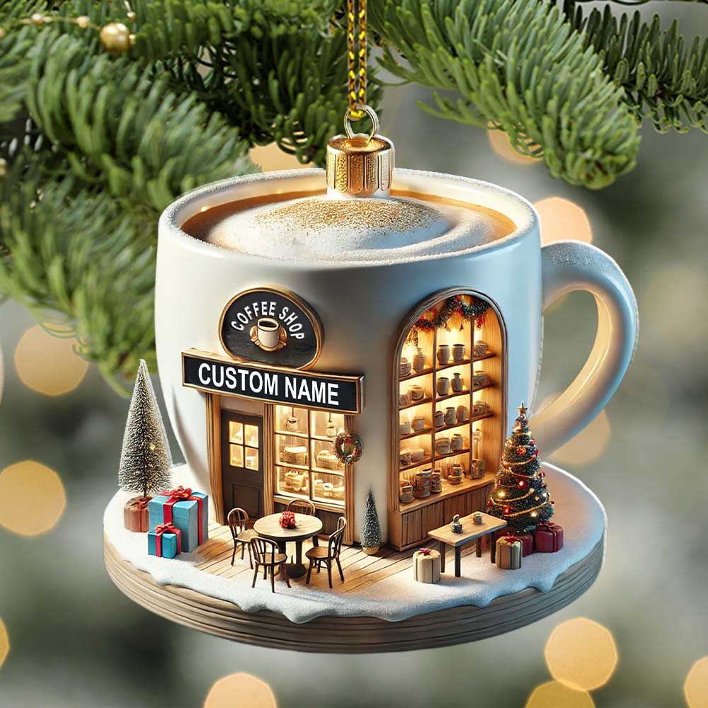 Custom Name Coffee Shop Ornament, Christmas Decoration for Coffee Shop