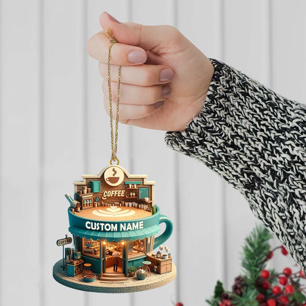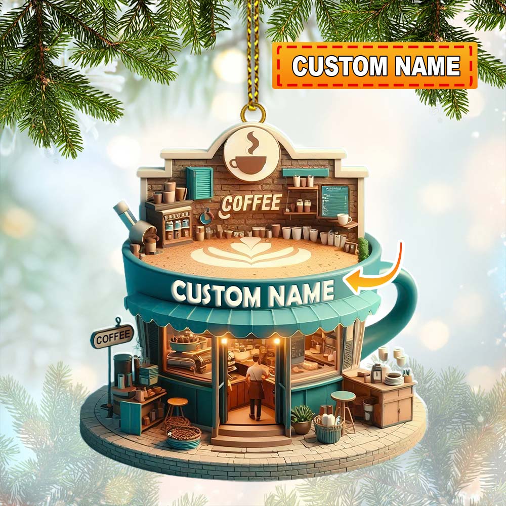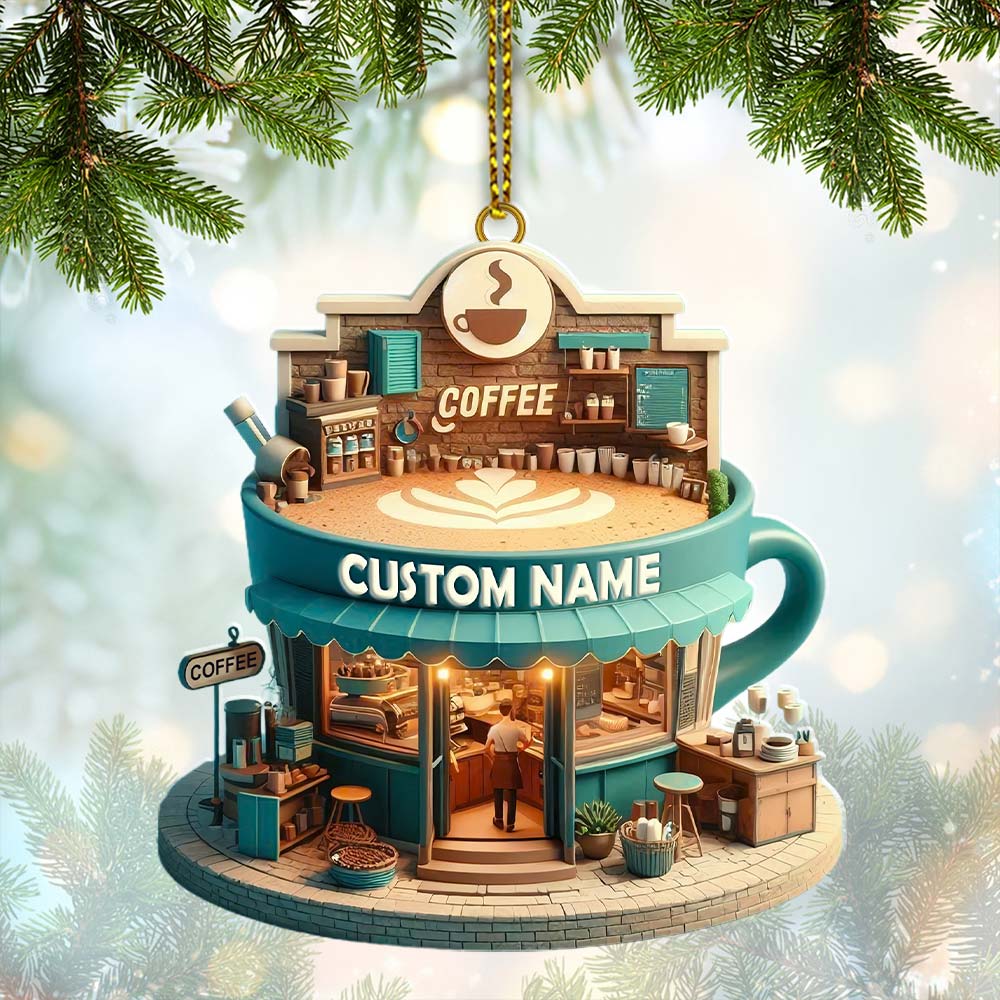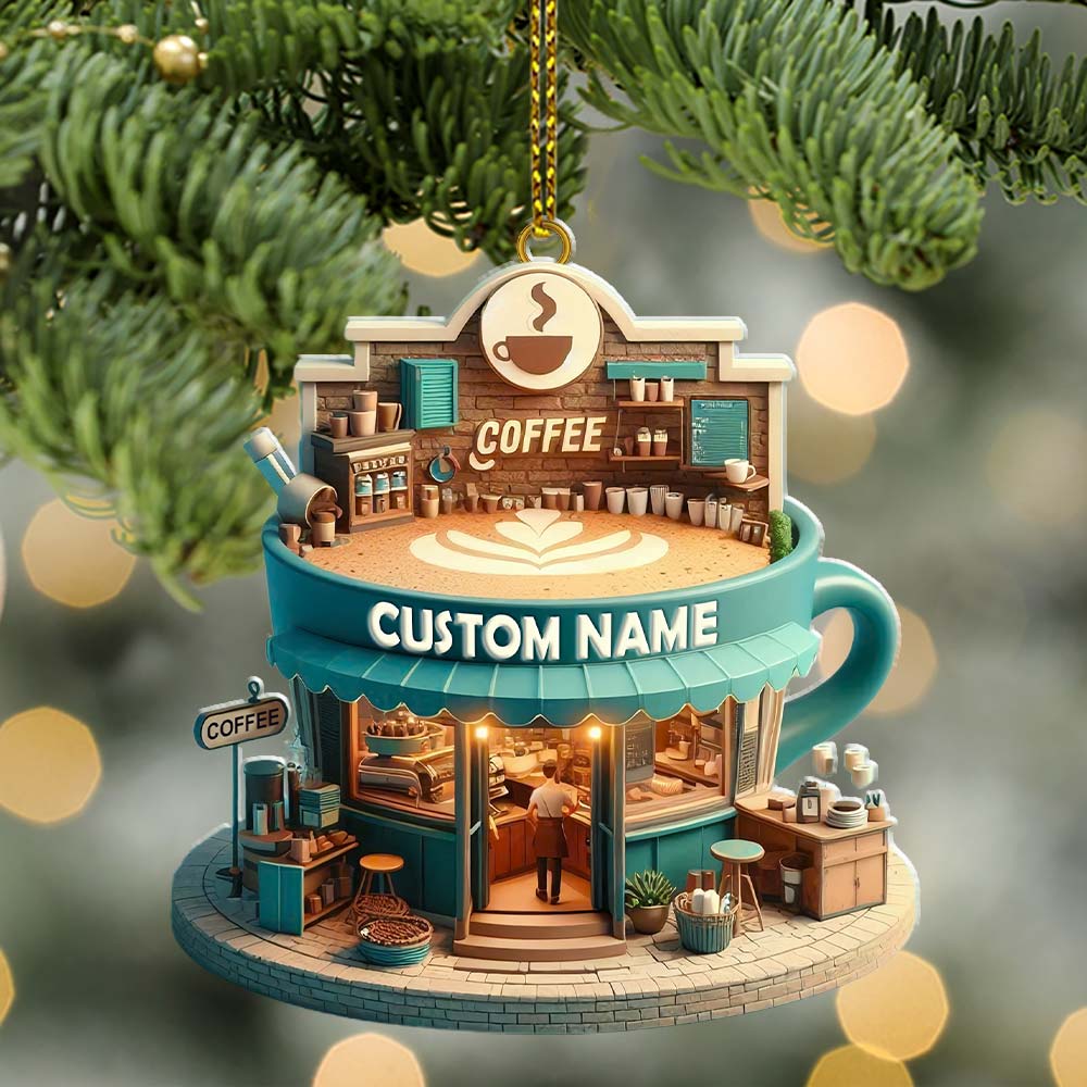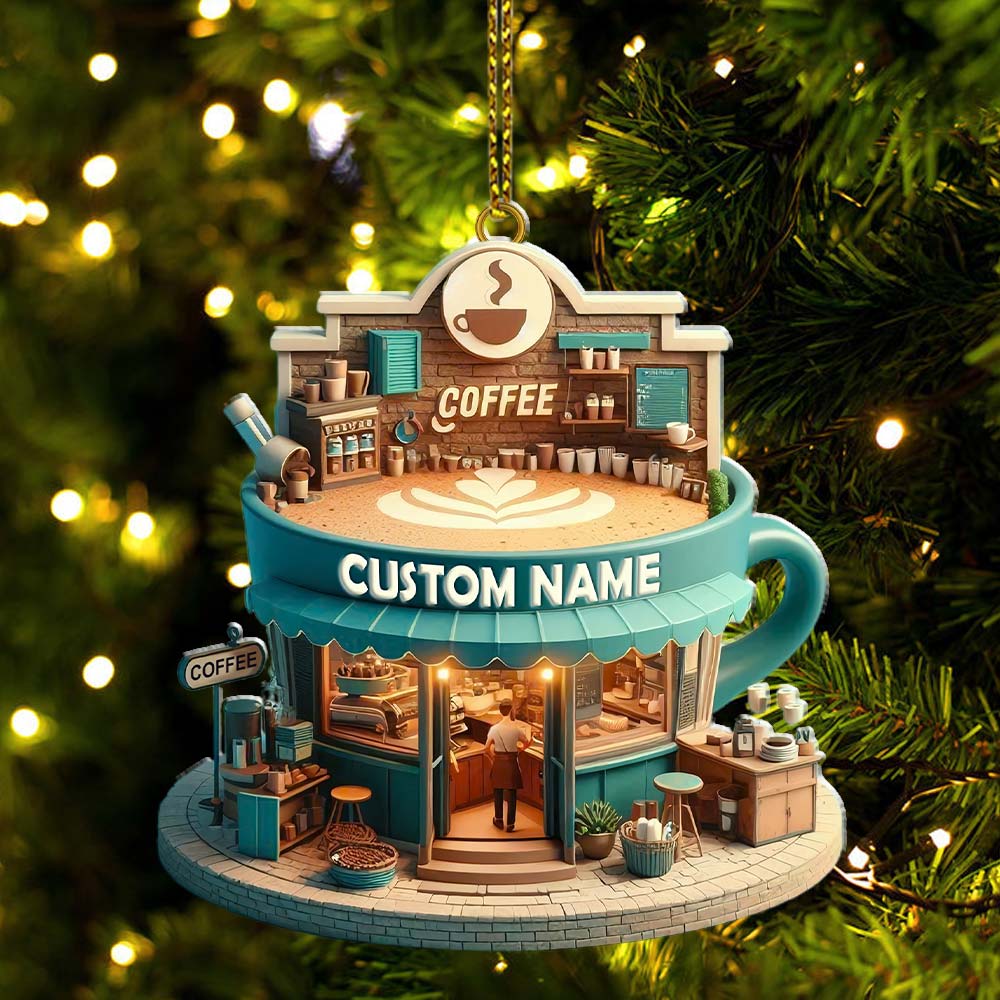 Custom Name Coffee Shop Ornament, Christmas Decoration for Coffee Shop