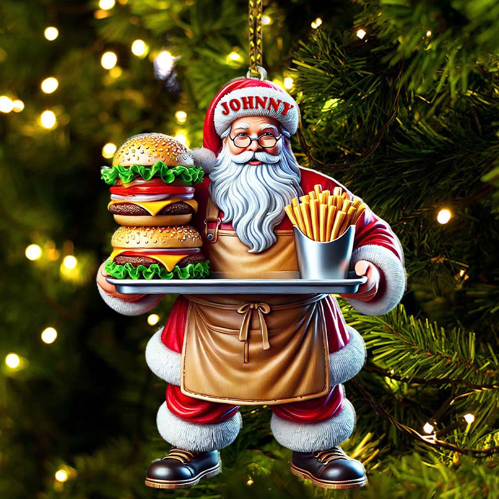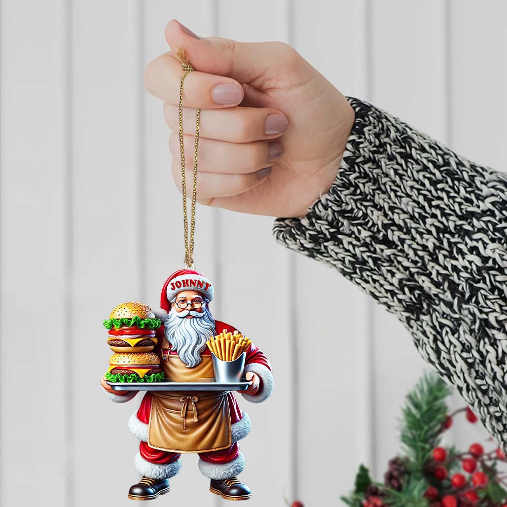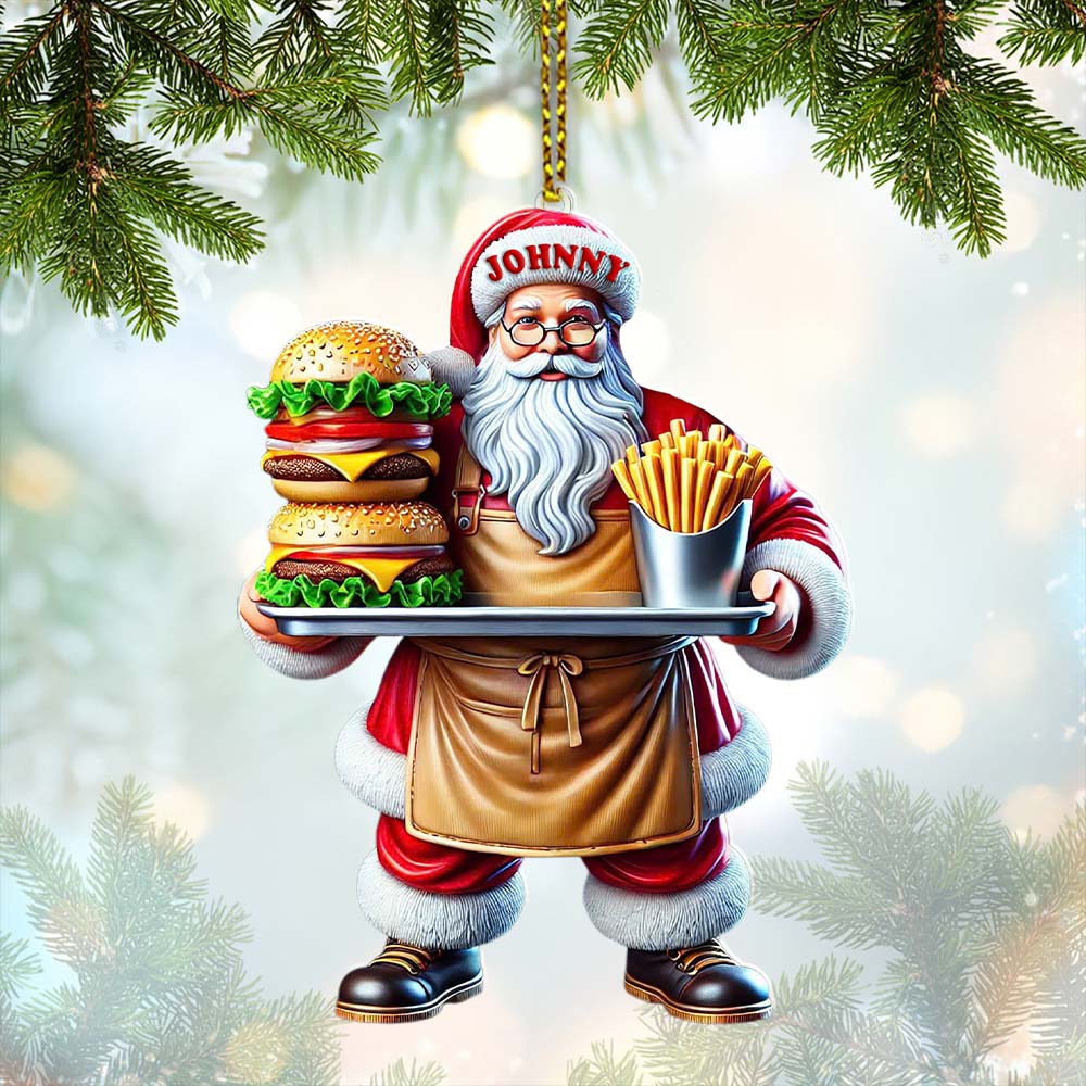 Custom Name Fast Food Santa Ornament, Santa Christmas Gift Decoration