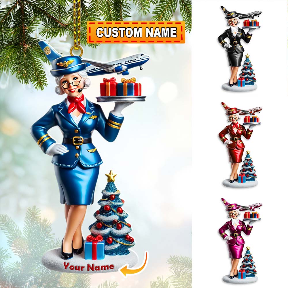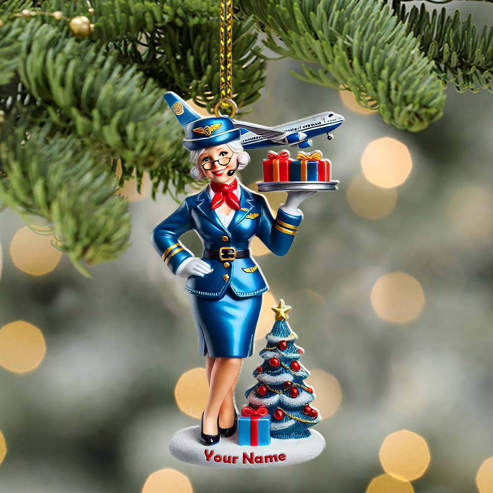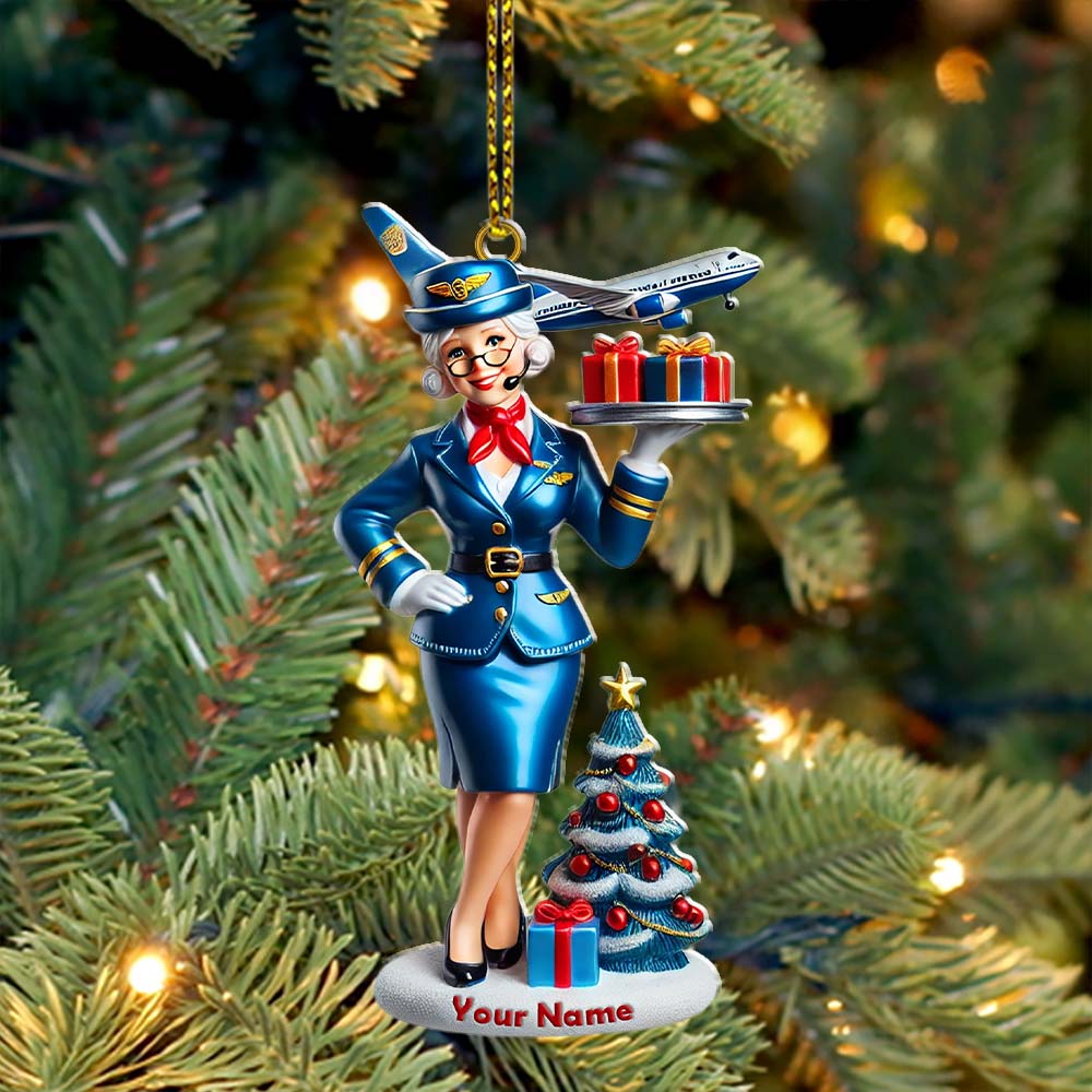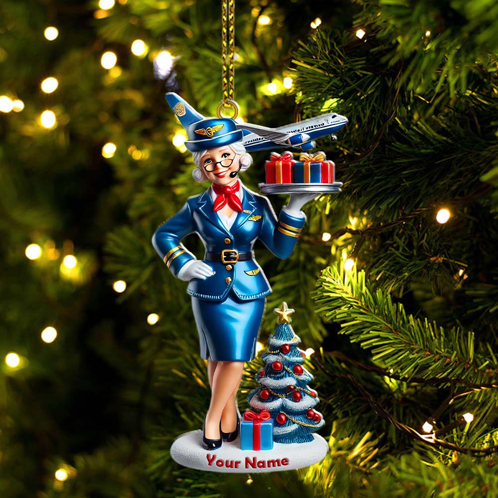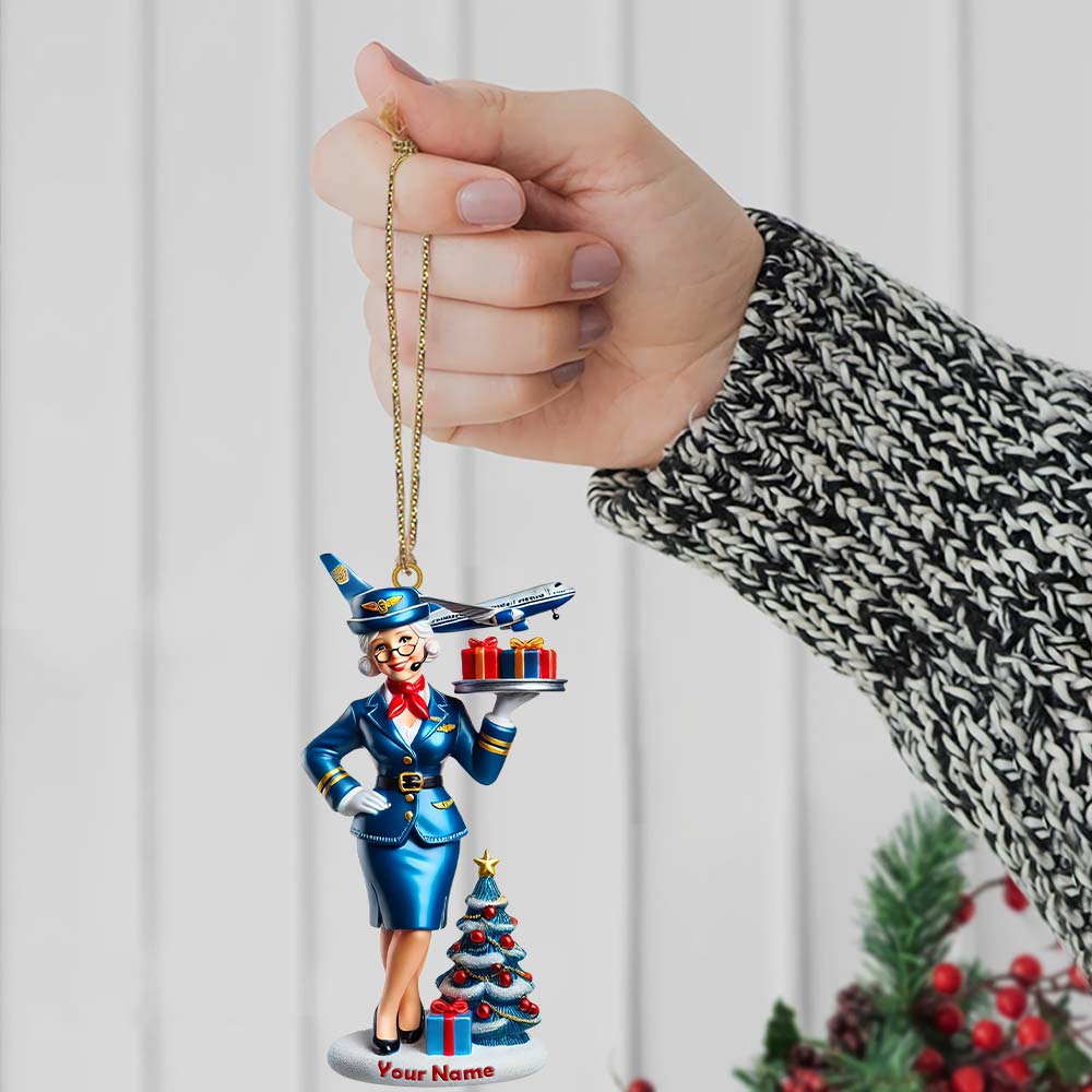 Custom Name Flight Attendant Santa Ornament, Flight Attendant Christmas Gift