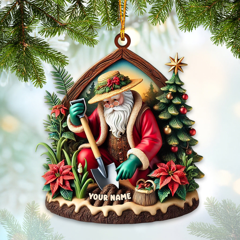 Custom Name Gardener Santa Ornament, Christmas Gift for Gardener