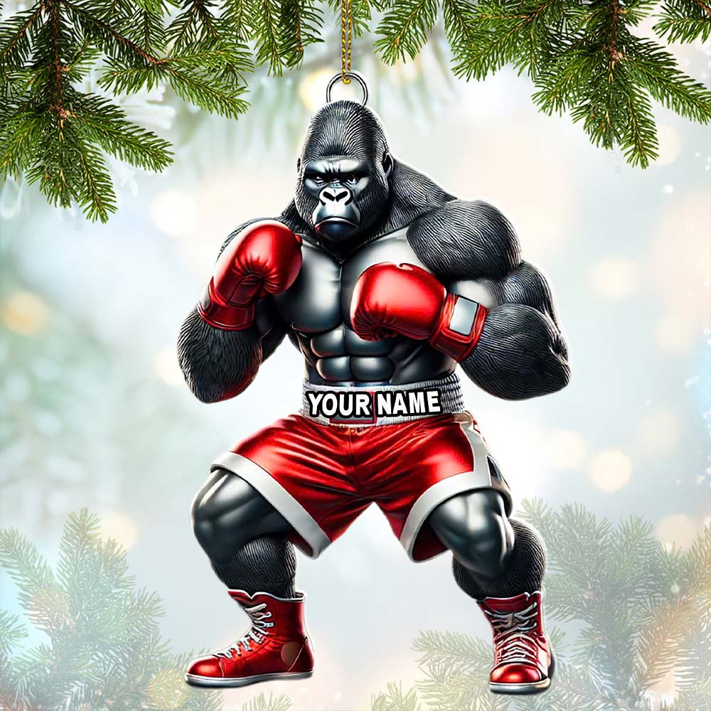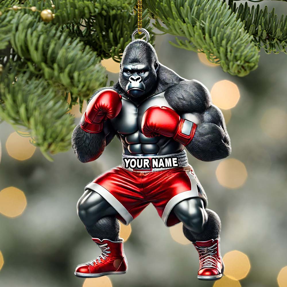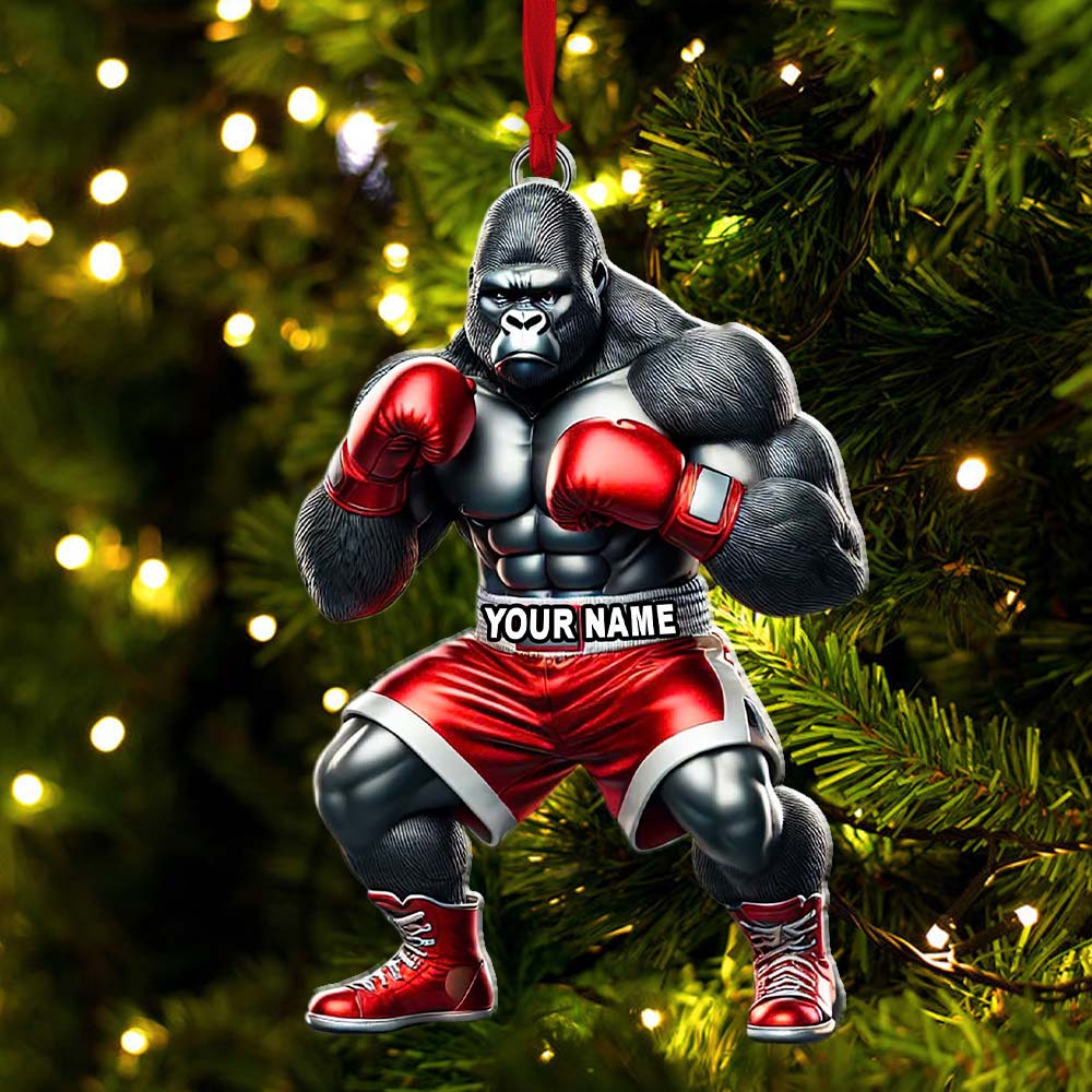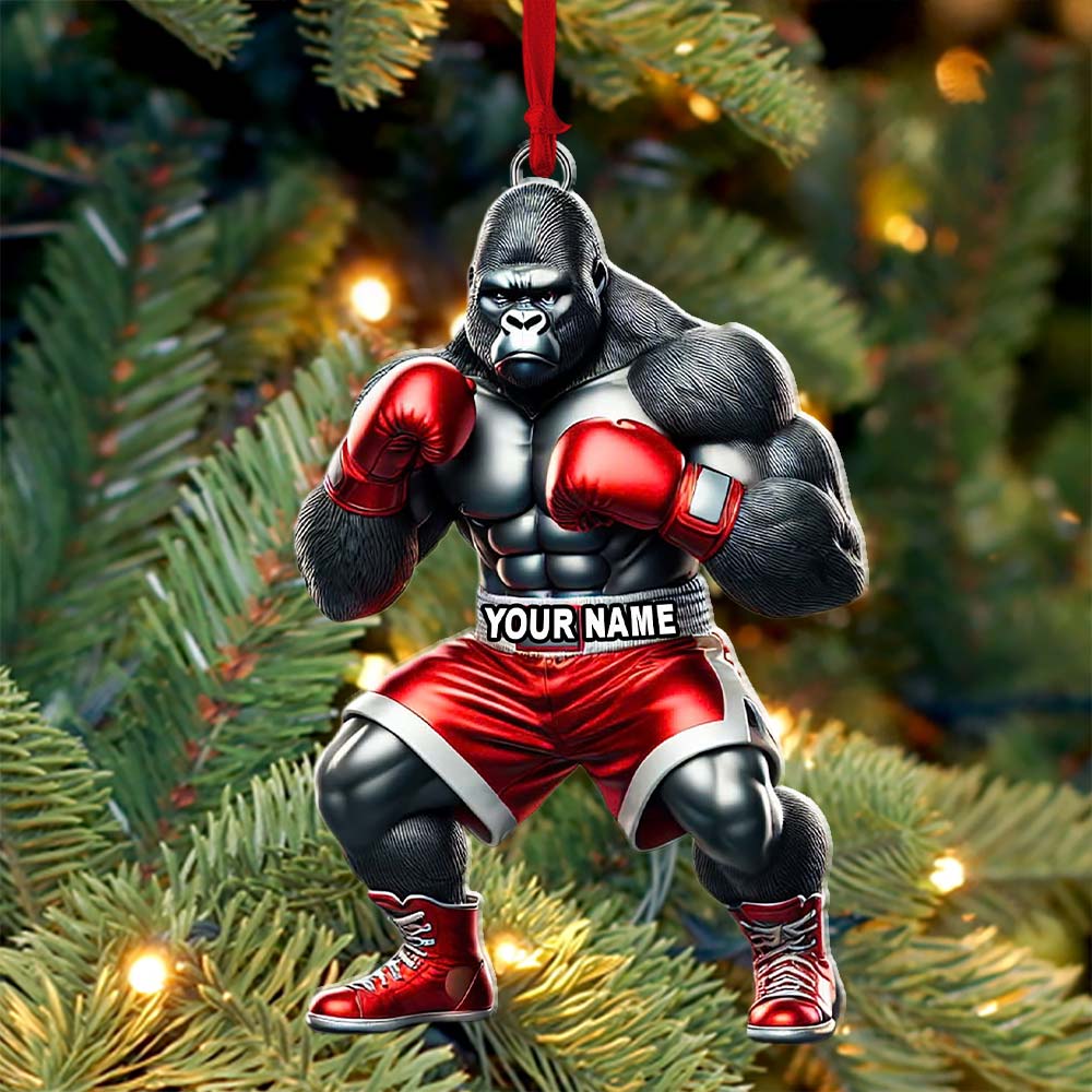 Custom Name Gorilla Boxing Ornament, Boxing Christmas Gift Decoration