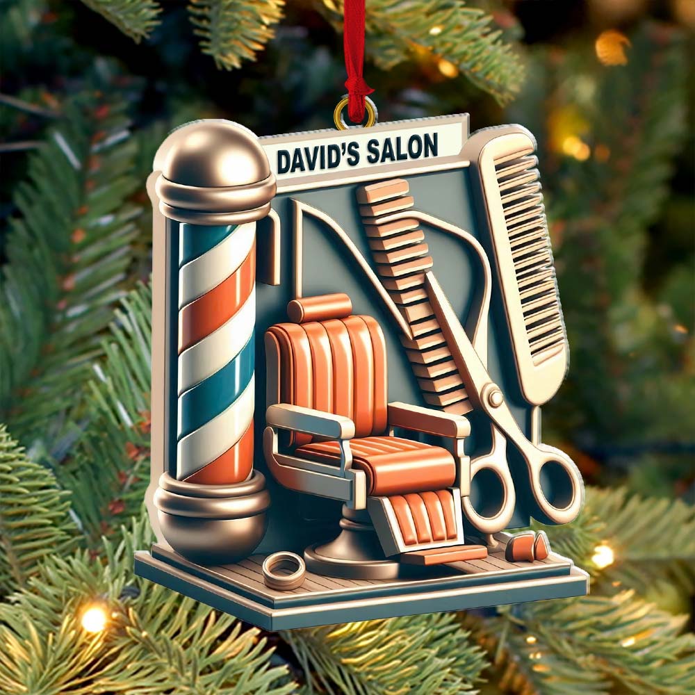 Custom Name Hair Salon Ornament, Hair Salon Christmas Decoration