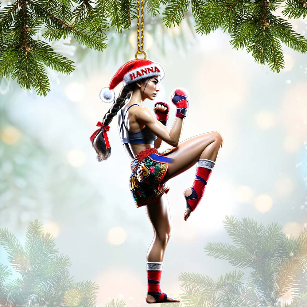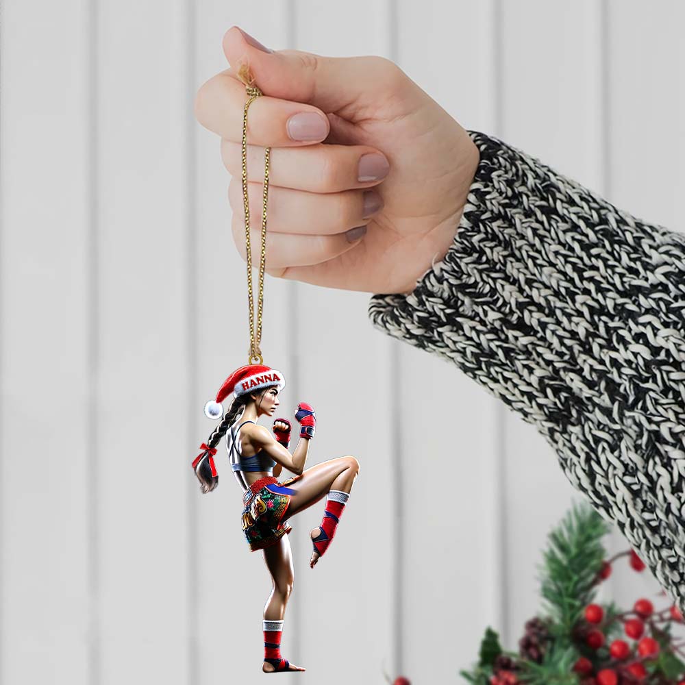 Custom Name Muay Thai Woman Ornament, Muay Thai Christmas Gift