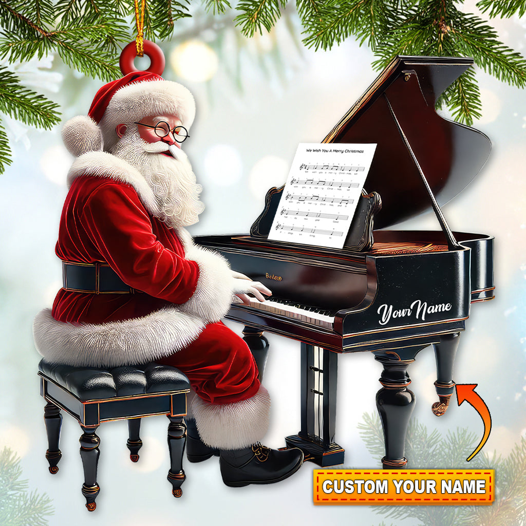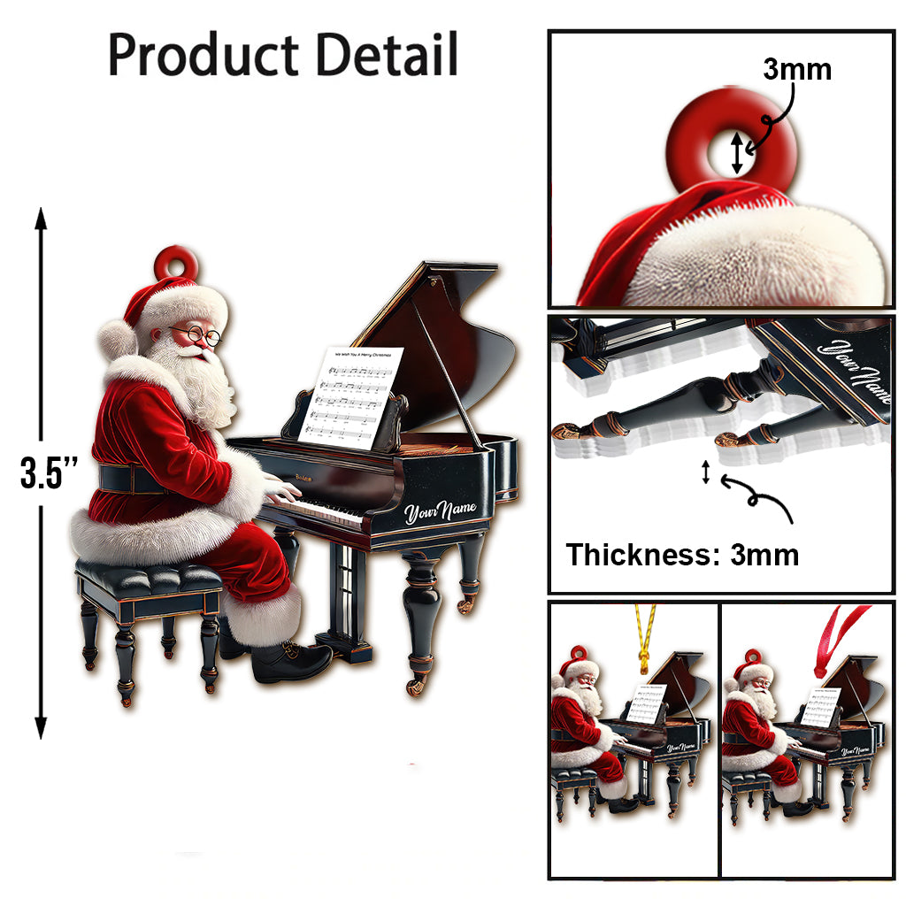 Custom Name Piano Santa Ornament, Christmas Gift for Pianist
