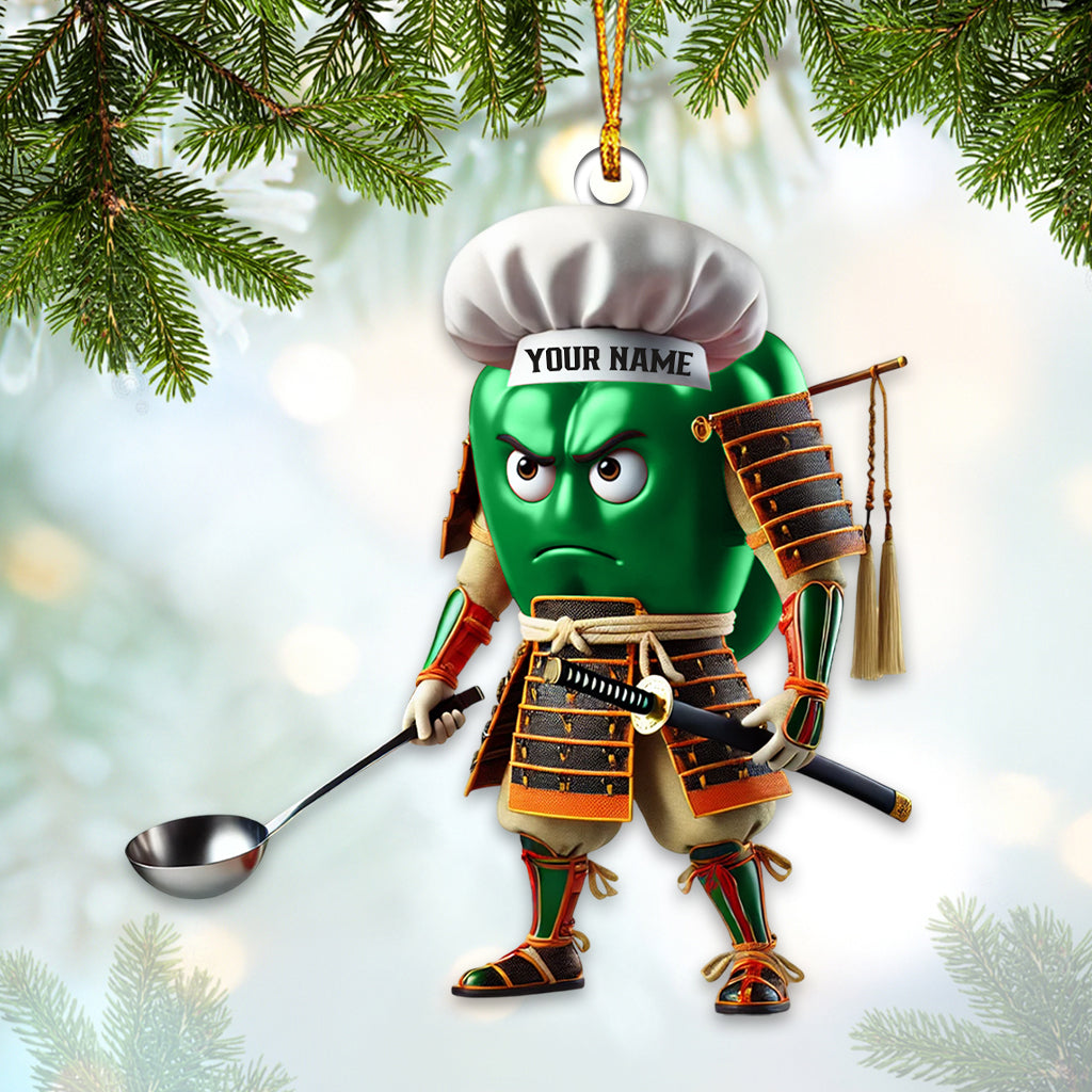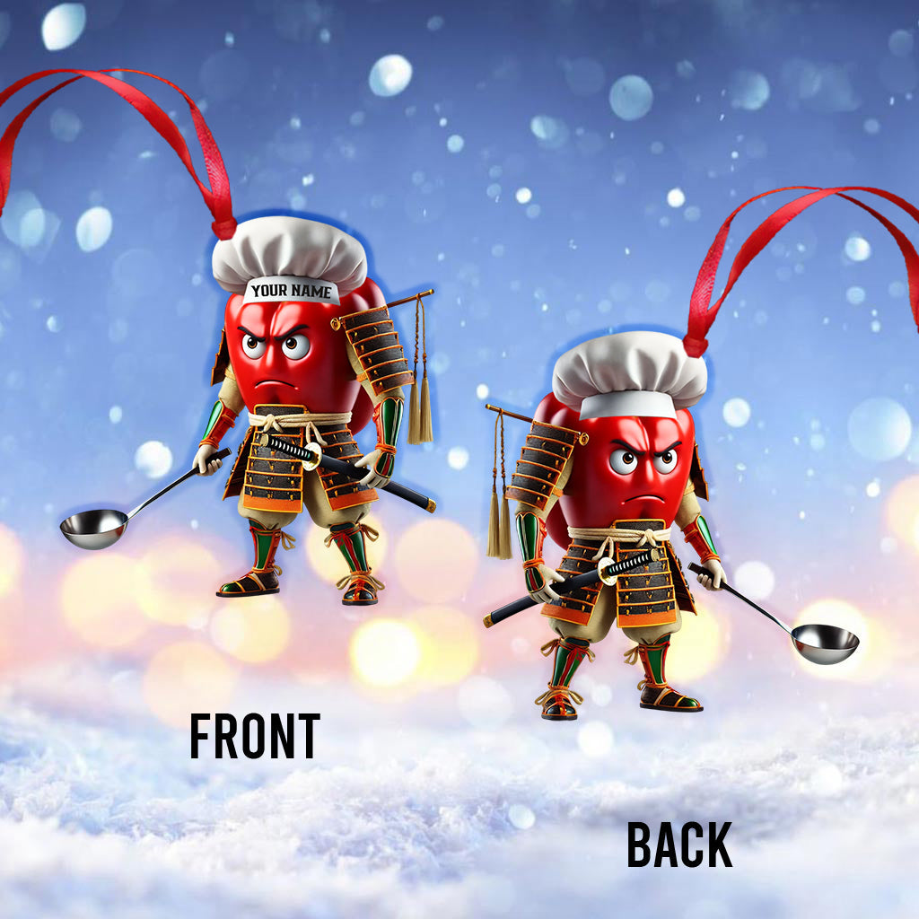 Custom Name Samurai Chef Ornament, Samurai Christmas Gift