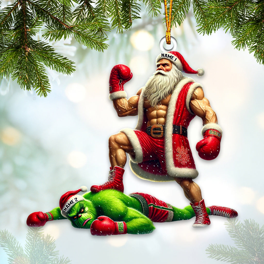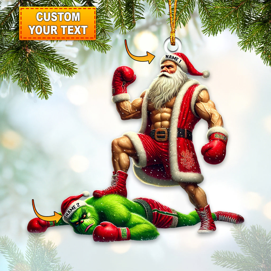 Custom Name Santa and Grinch Boxing Ornament, Santa and Grinch Christmas Decoration