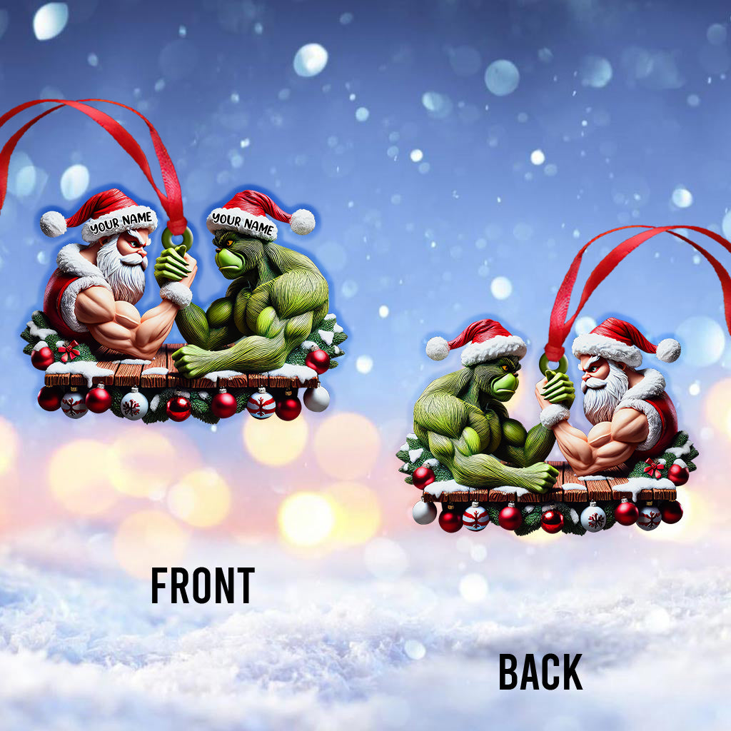 Custom Name Santa and Stink Ornament, Santa and Stink Christmas Gift