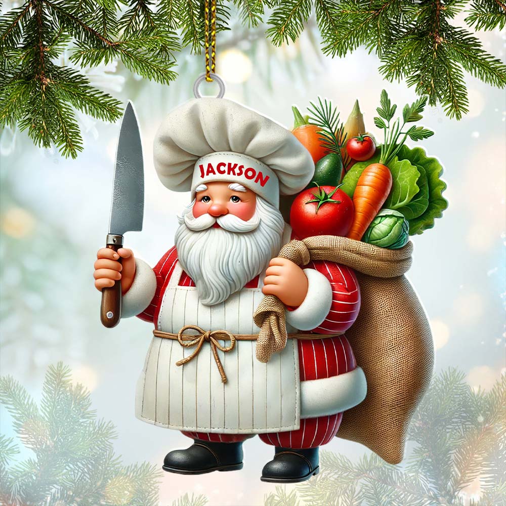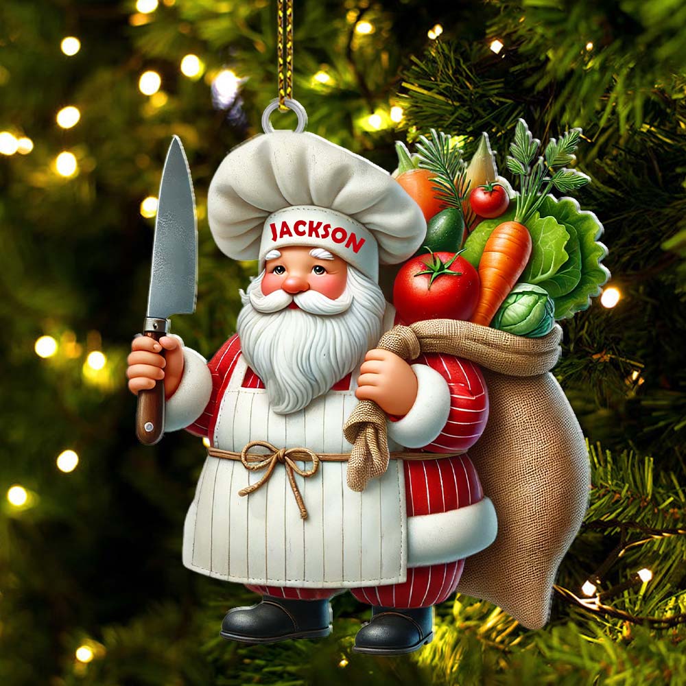 Custom Name Santa Chef Ornament, Chef Christmas Gift