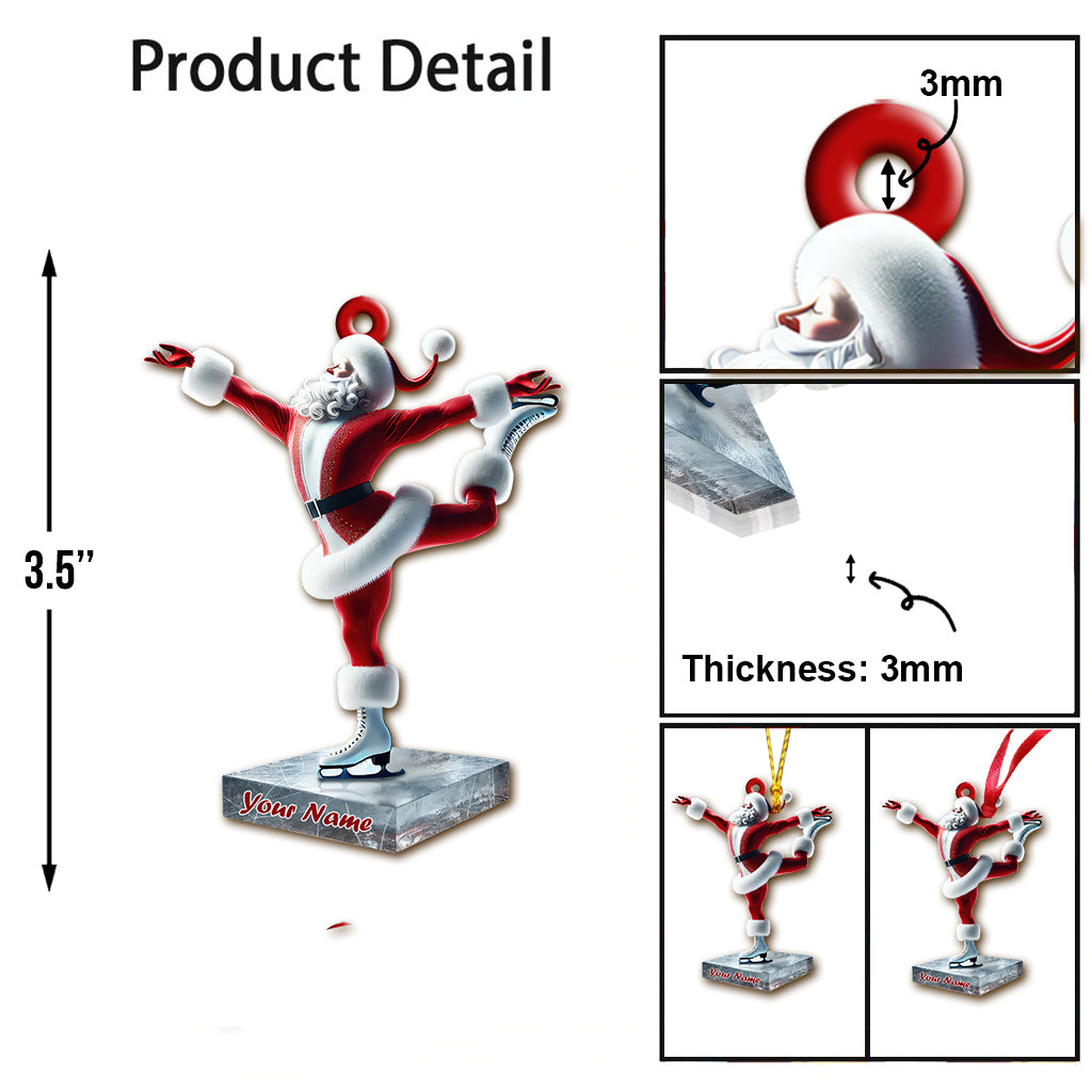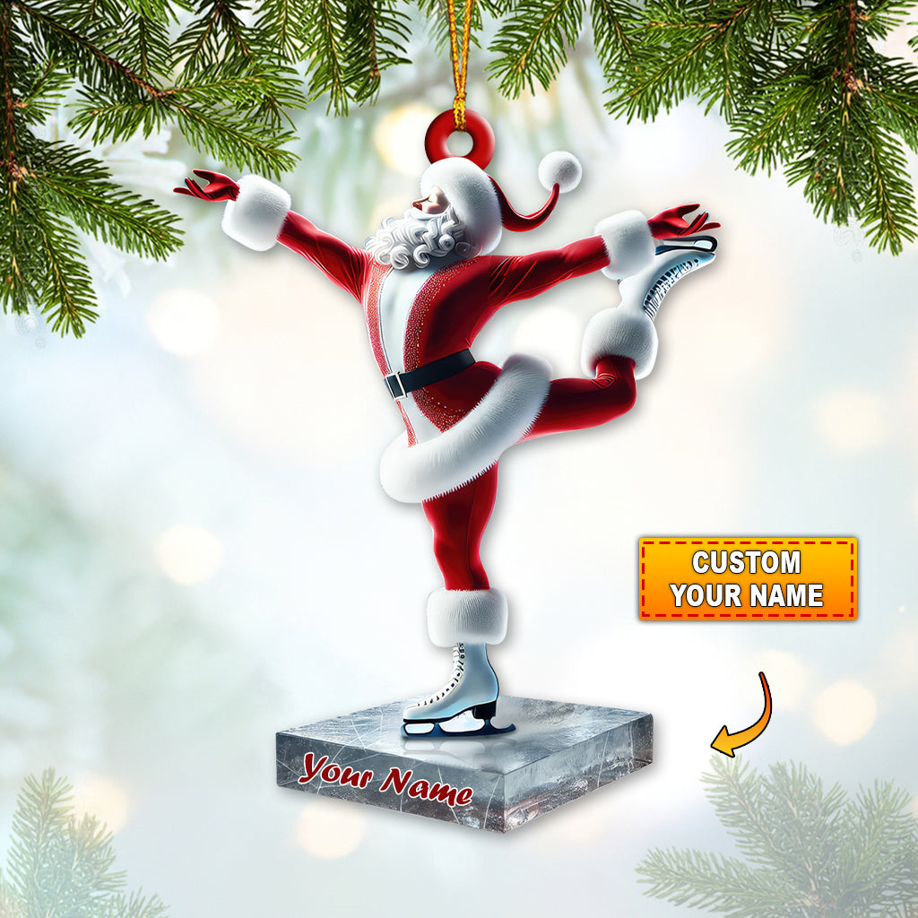 Custom Name Santa Figure Skating Ornament, Santa Christmas Decoration