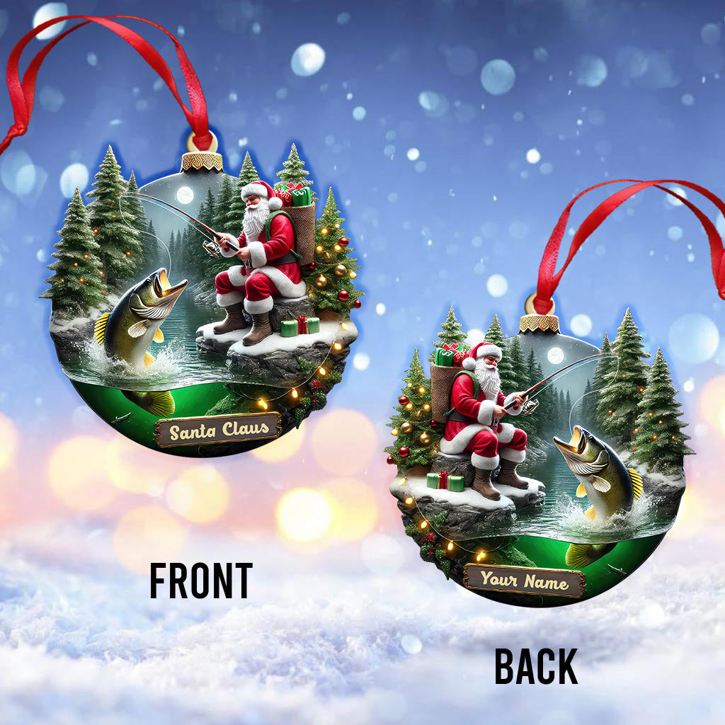 Custom Name Santa Fishing Ornament, Fishing Lover Christmas Gift