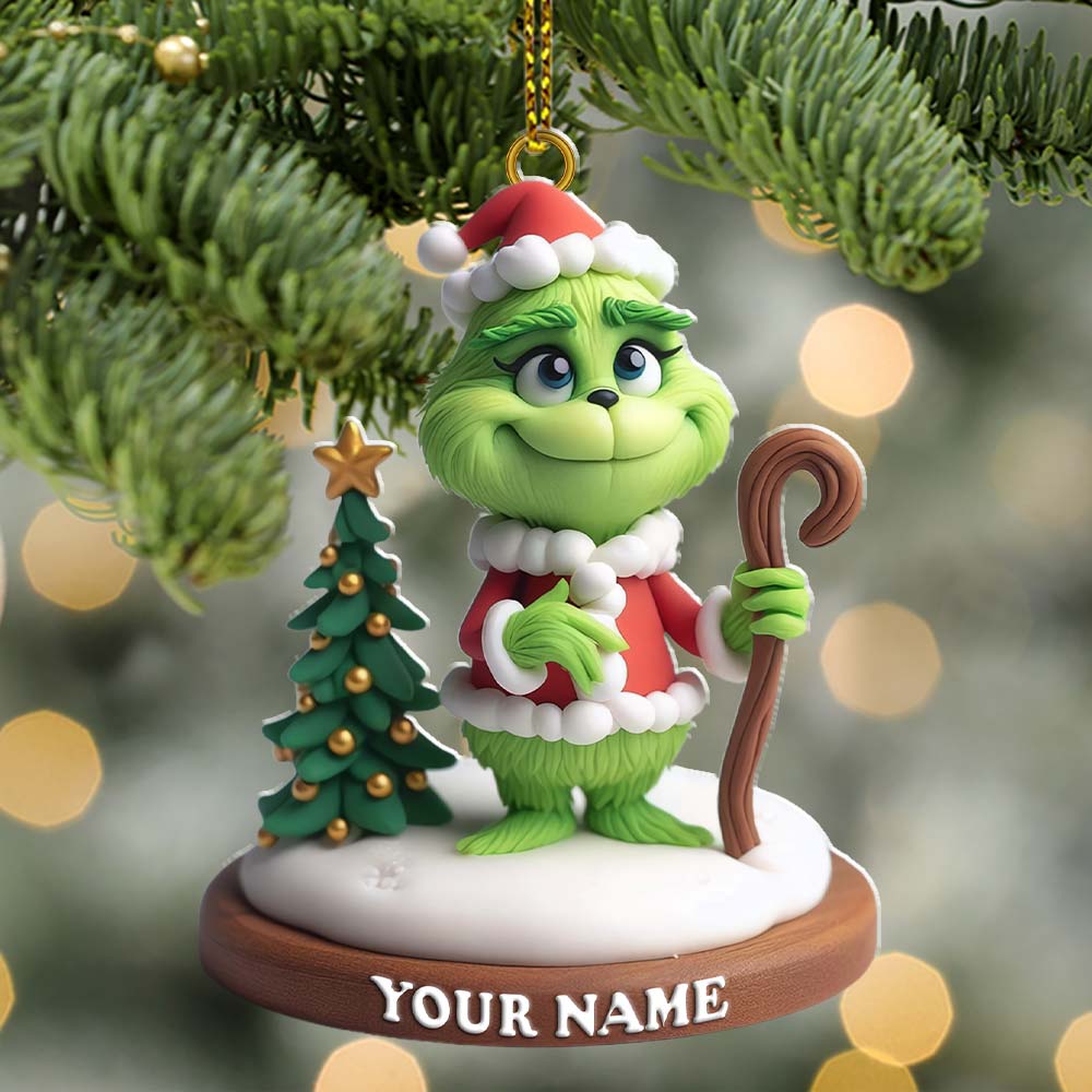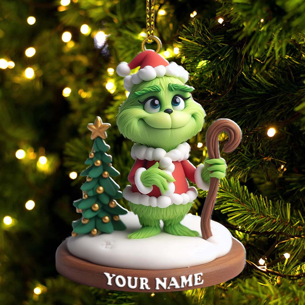 Custom Name Santa Grinch Ornament, Grinch Ornament Christmas Decoration