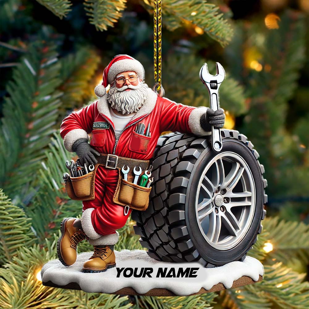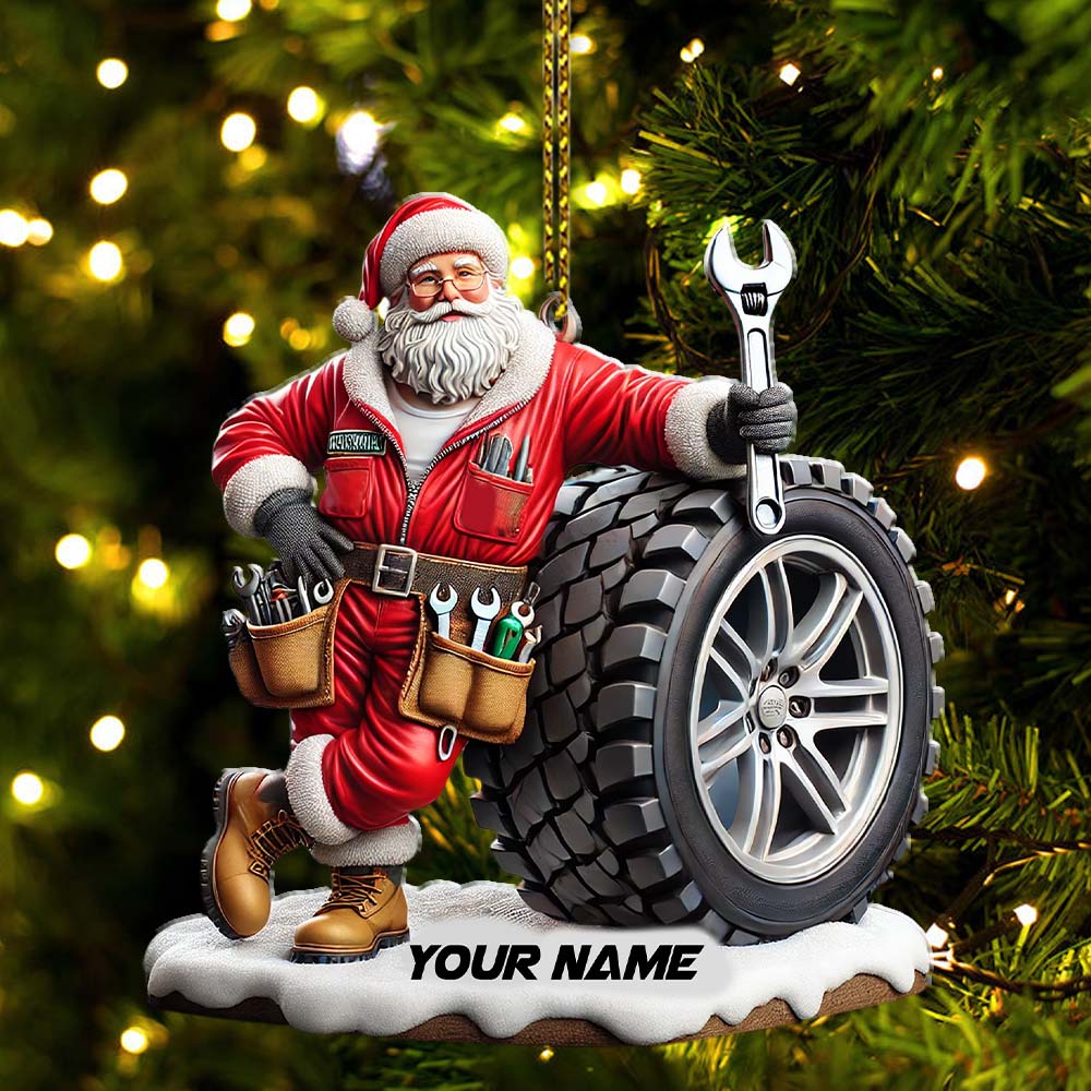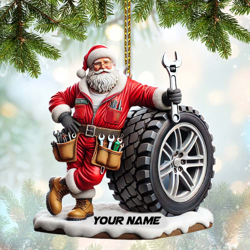 Custom Name Santa Mechanic Ornament, Christmas Gift
