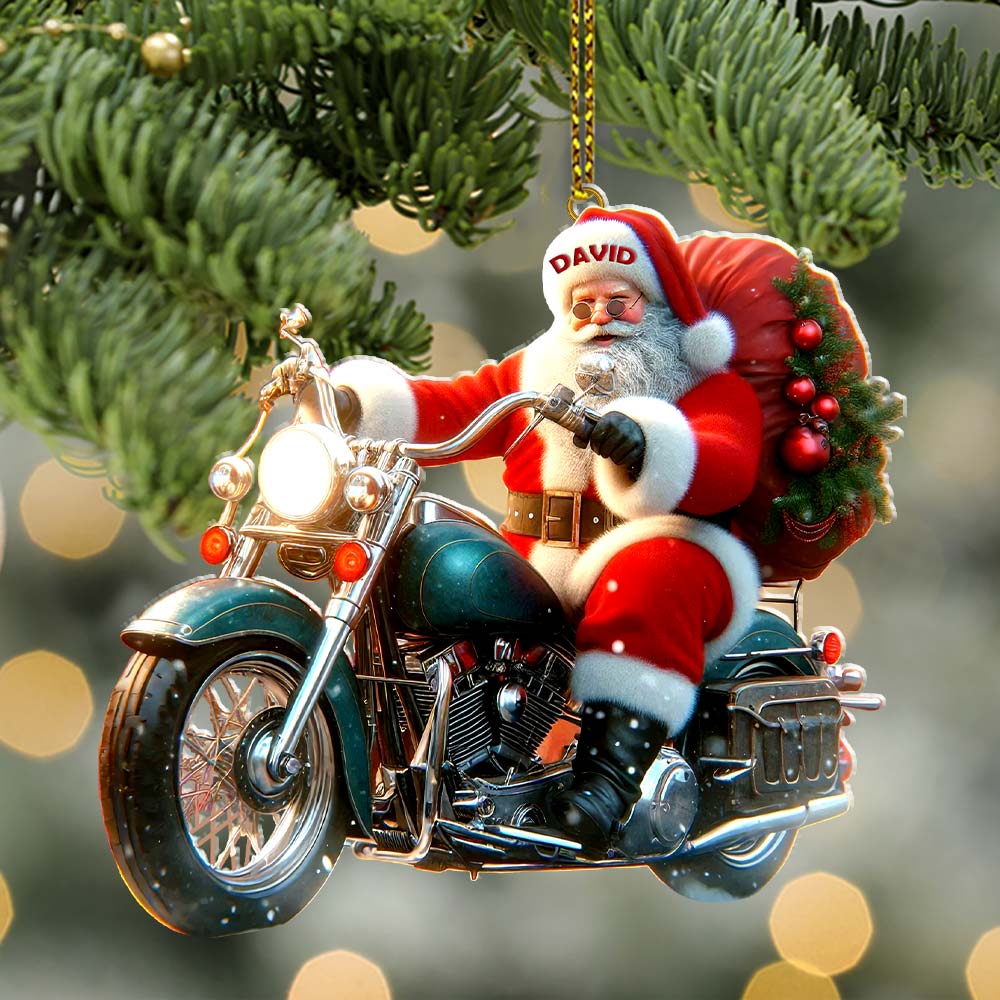 Custom Name Santa Motorbike Ornament, Santa Christmas Gift