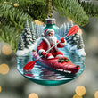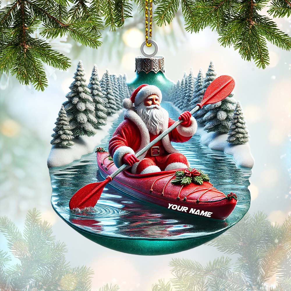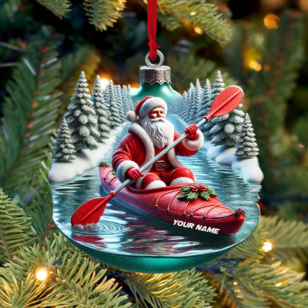Custom Name Santa Kayaking Ornament, Christmas Gift Decoration