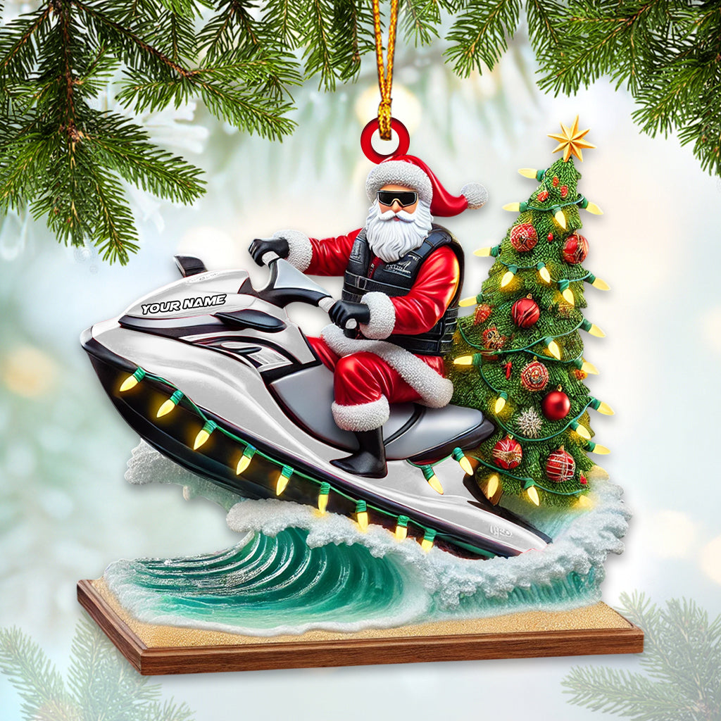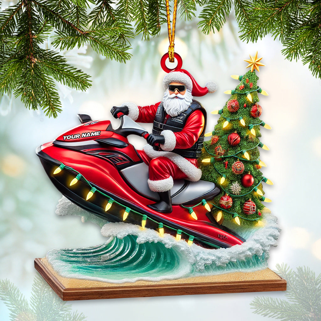 Custom Name Santa Jet Ski Ornament, Christmas Gift Decoration