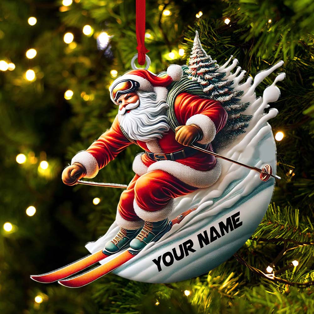 Custom Name Santa Skiing Ornament, Santa Christmas Gift Decoration