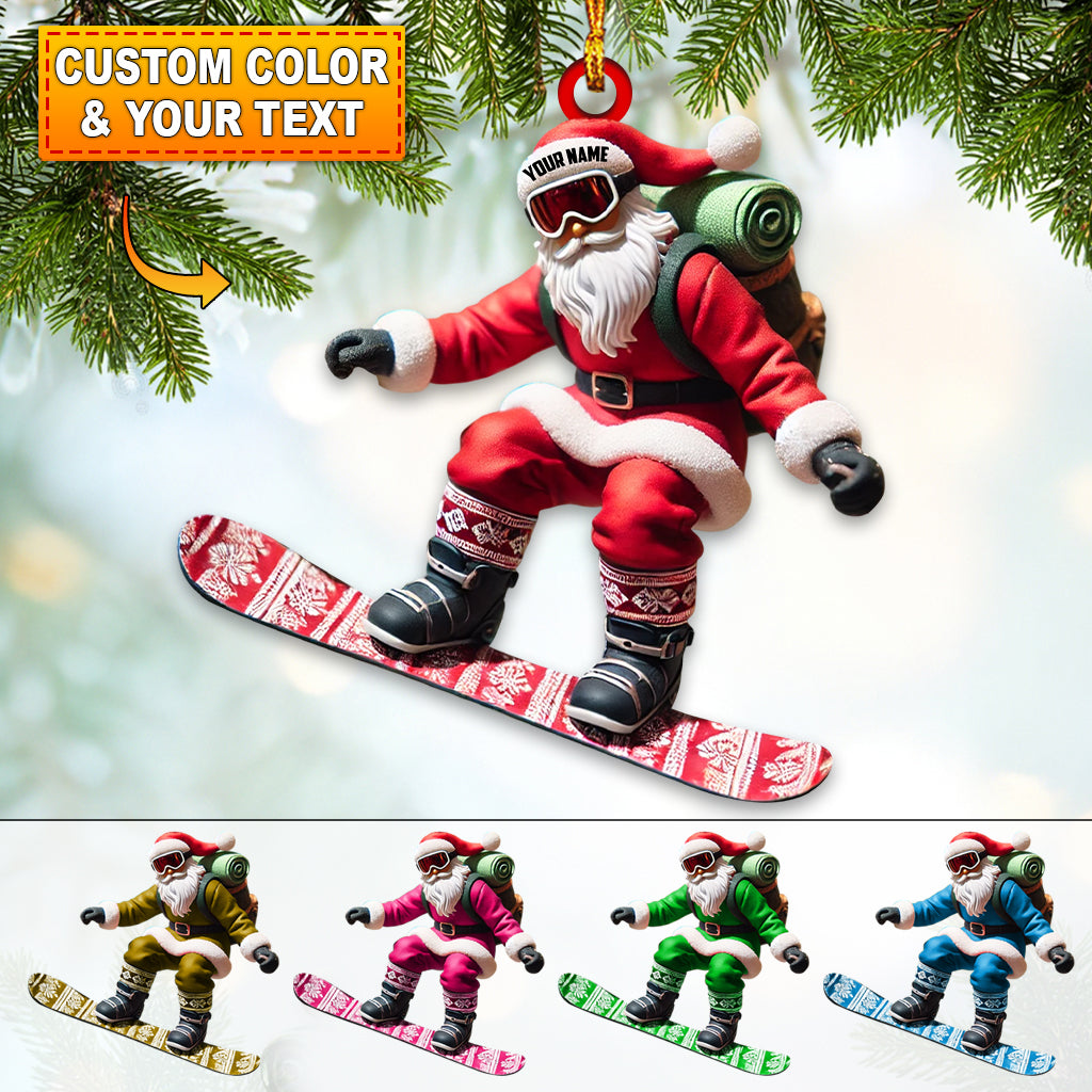 Custom Name Santa Snowboarding Ornament, Santa Christmas Gift Decoration
