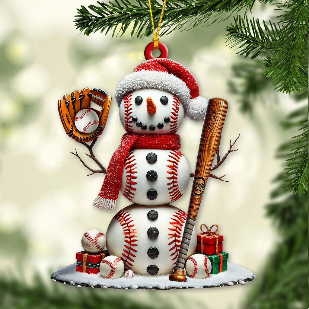 Custom Name Snow White Baseball Ornament, Snowman Christmas Decoration