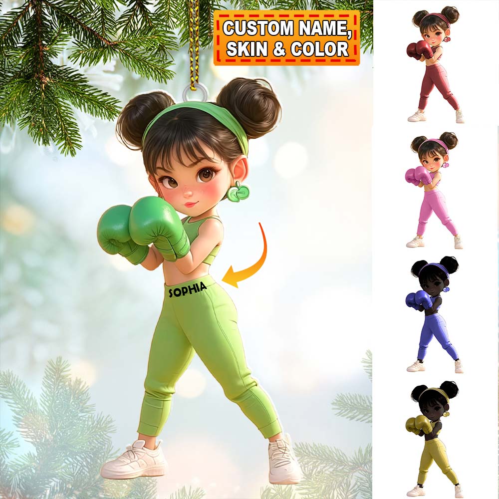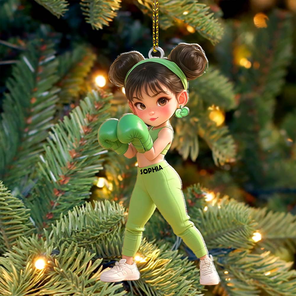 Custom Name Woman Boxing Ornament, Boxing Christmas Gift