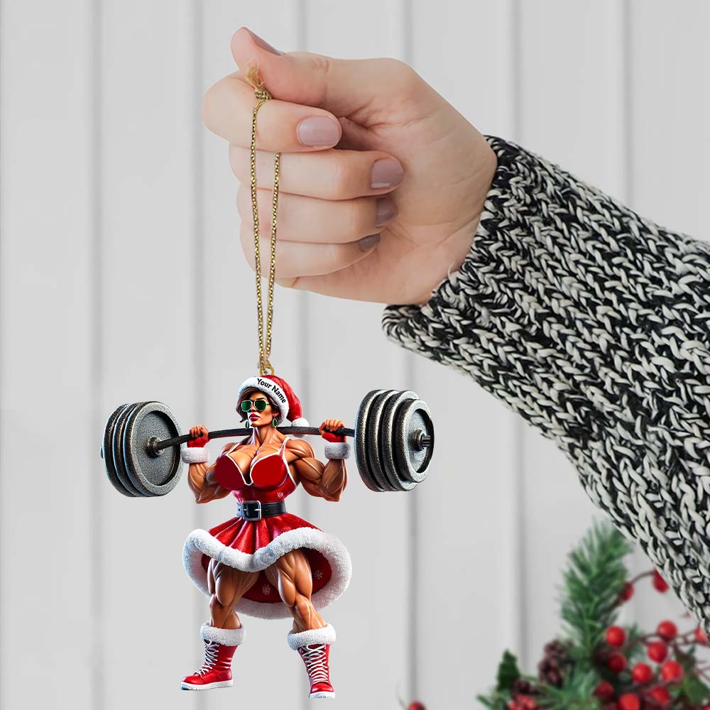 Custom Name Woman Gym Work Out Santa Ornament, Christmas Gift Decor