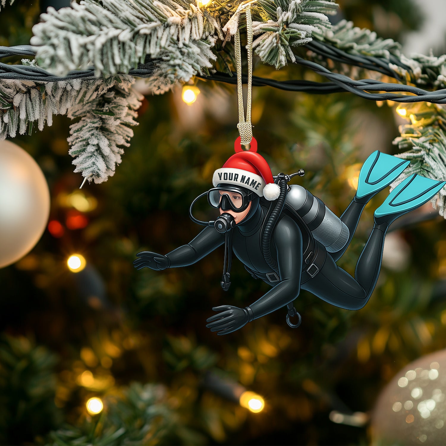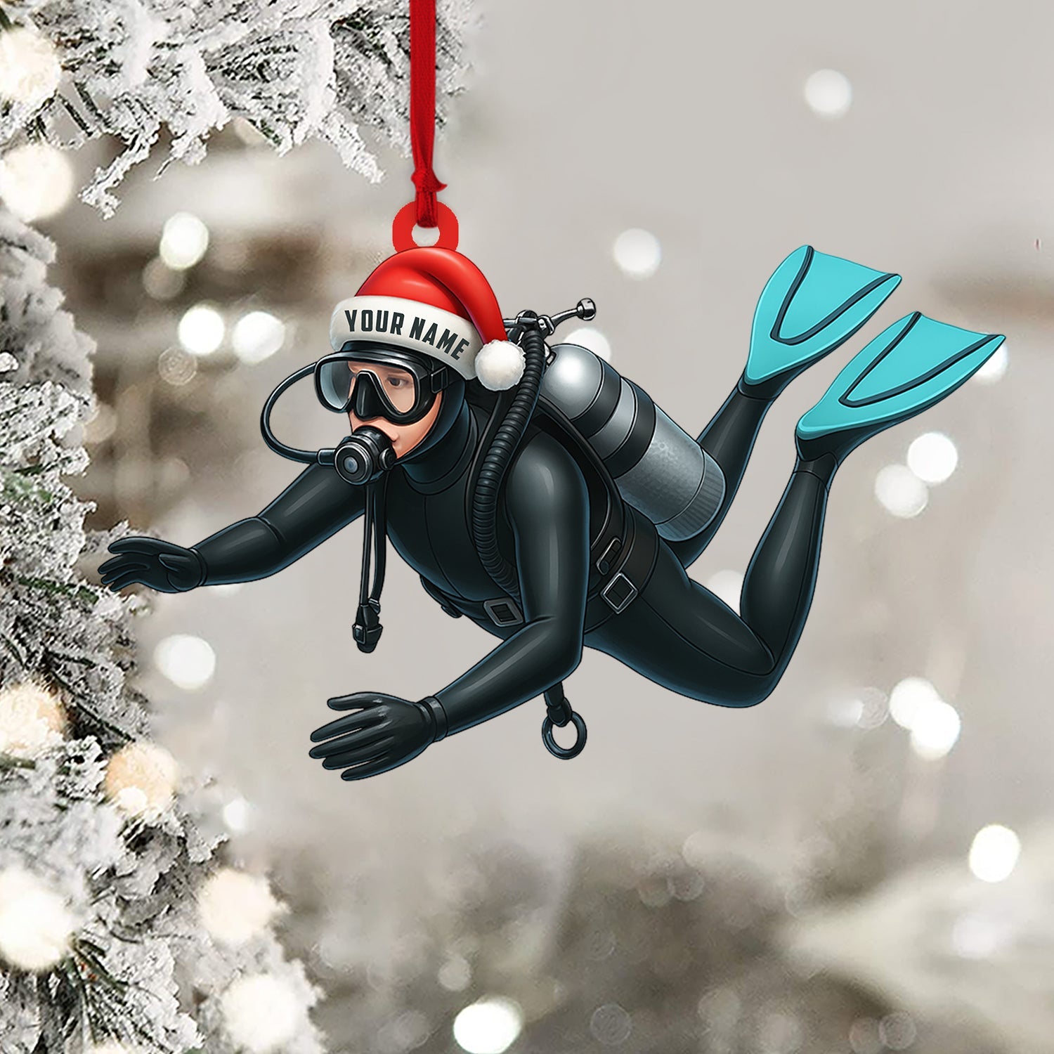 Diver Santa, Home Decor, Christmas Ornament, Personalized Ornament