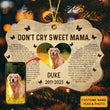 Don't Cry Sweet Mama - Custom Photo And Name - Personalized Custom Shaped Wooden Ornament, Memorial Gift, Gift For Pet Lover