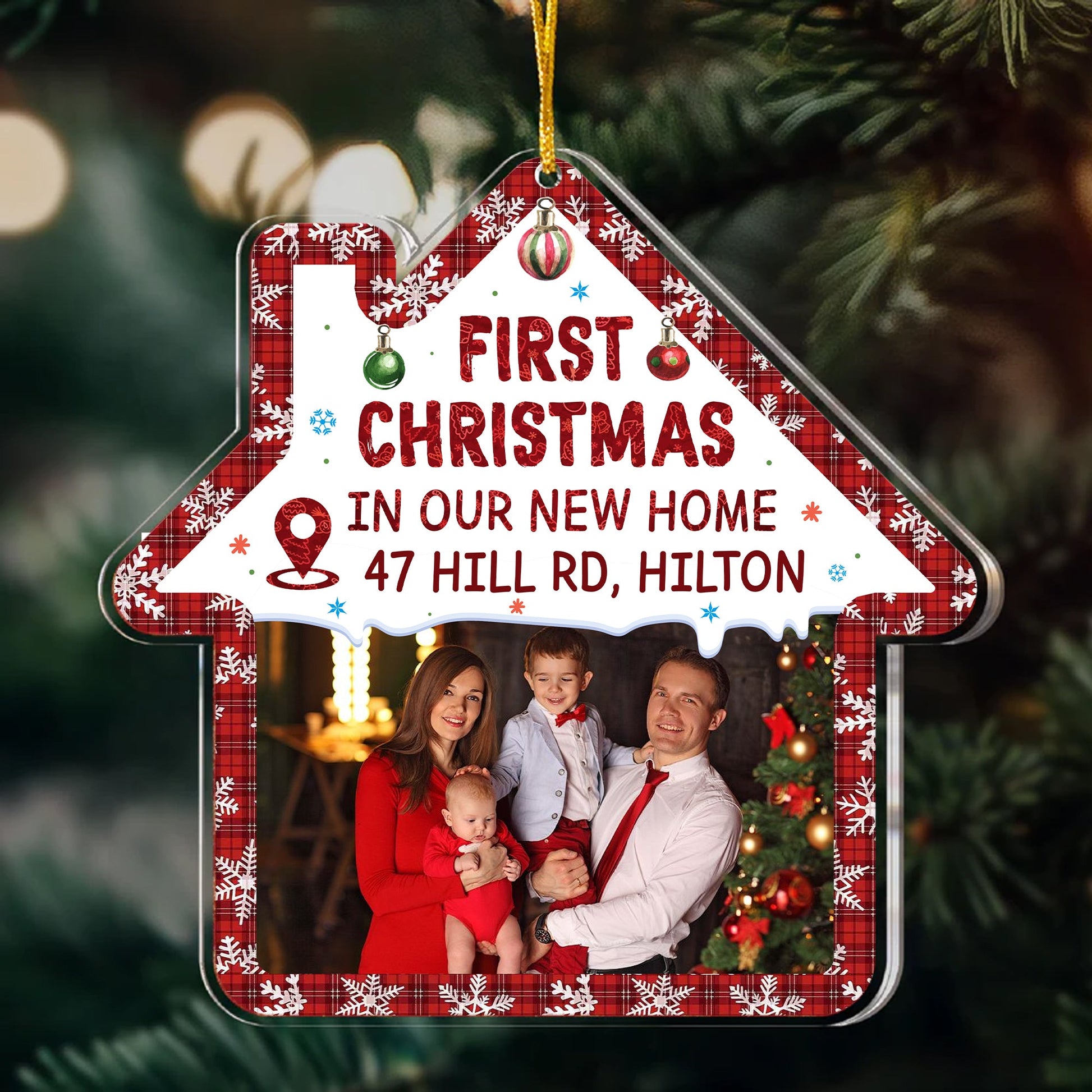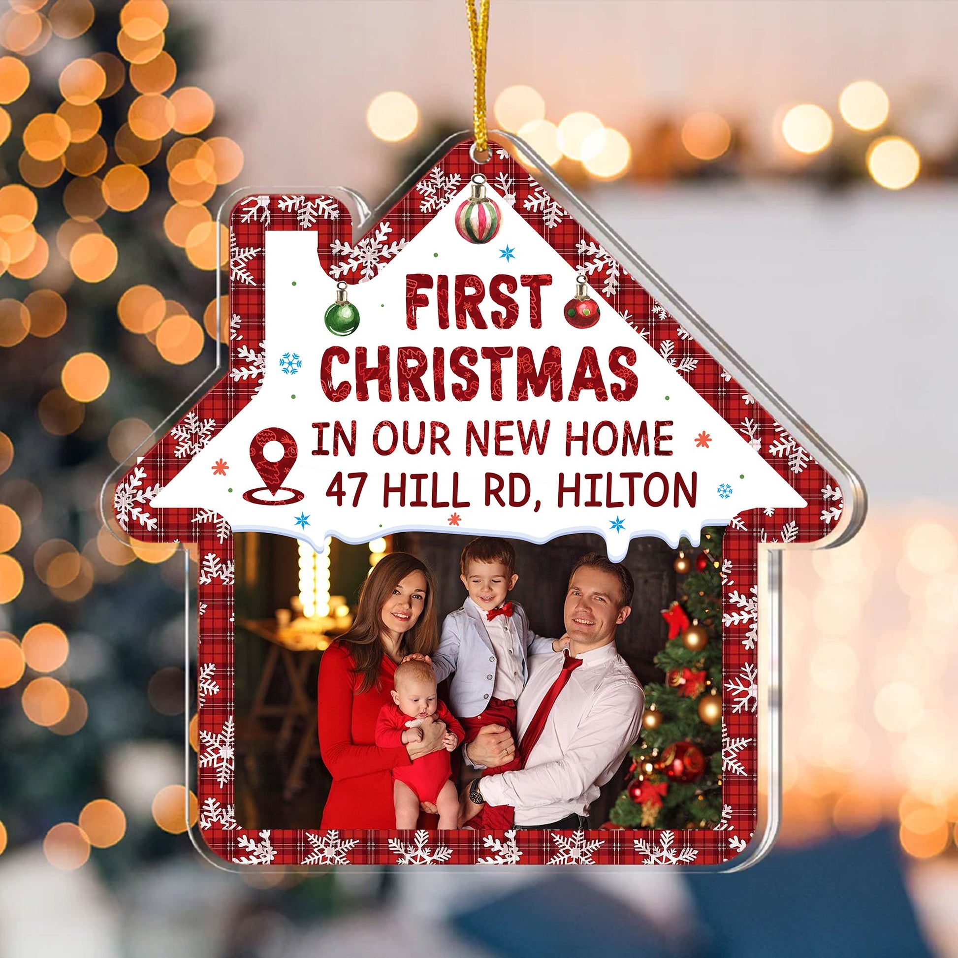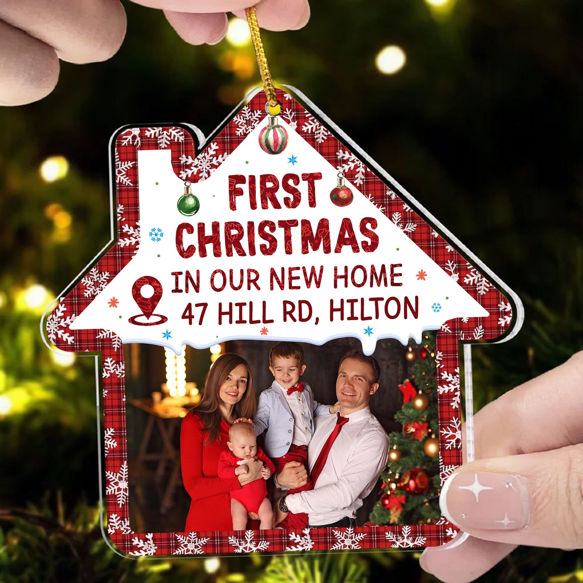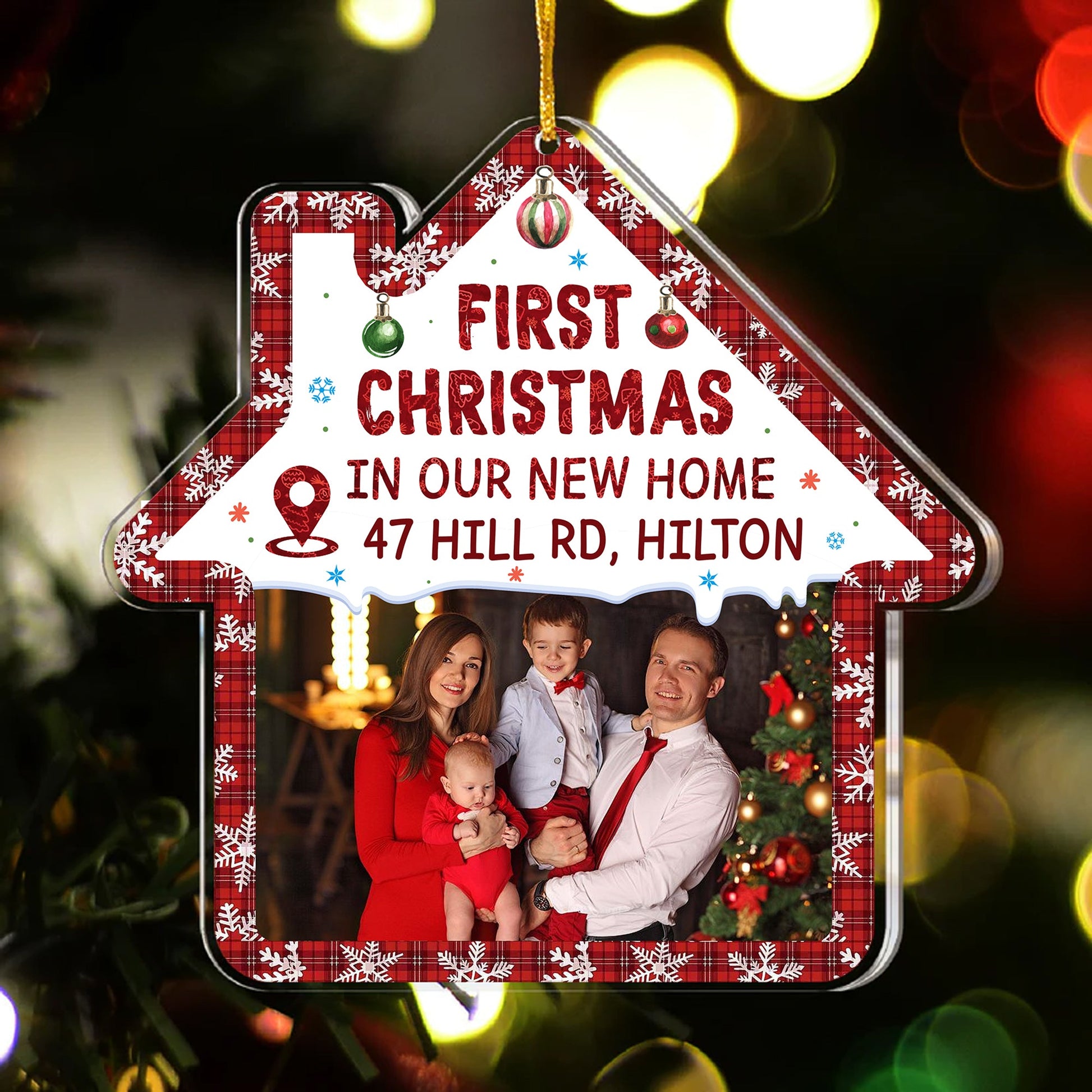 First Christmas In Our New Home - Custom Photo And Address, Personalized Acrylic Ornament - Gift For Christmas, Gift For Family