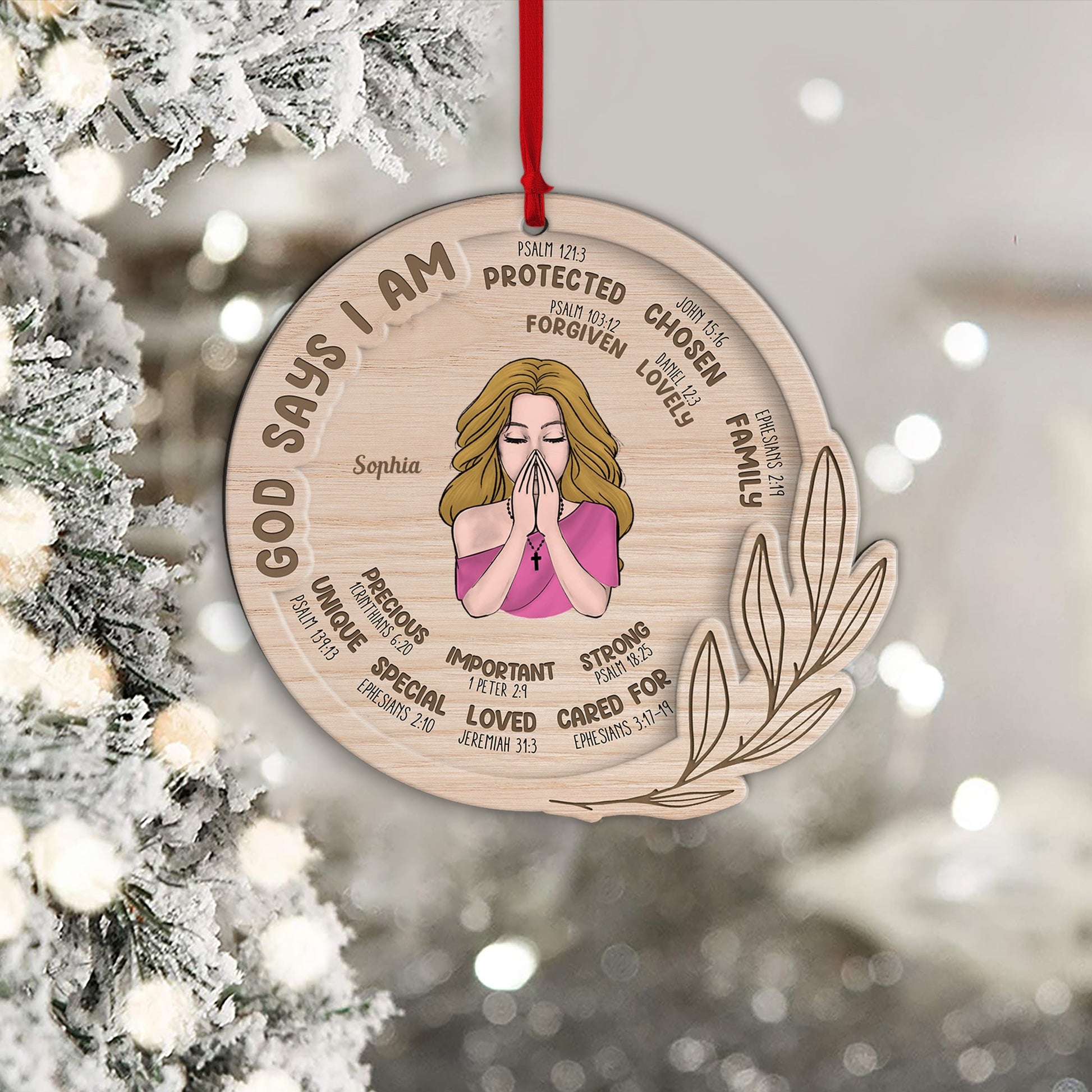 God Says I Am Unique Special Lovely Precious Strong - Personalized Custom Shaped 2-Layered Wooden Ornament - Gift For Woman