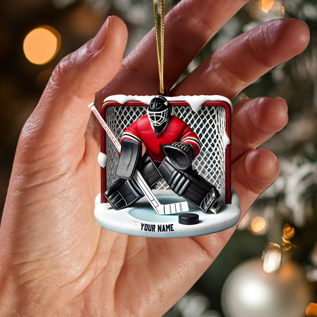Hockey Goal Keeper Christmas Ornament, Personalized Ornament