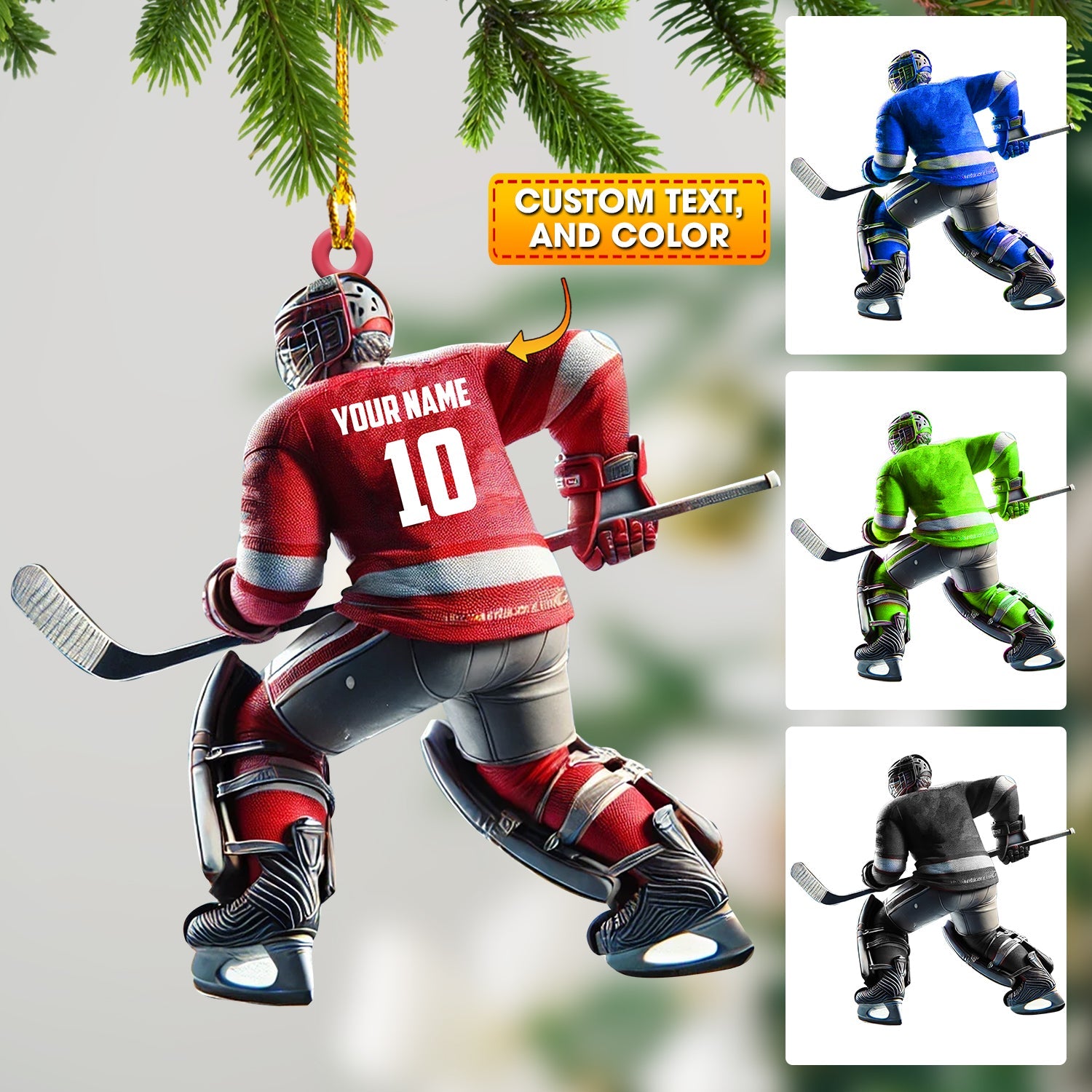 Hockey Player Christmas Ornament, Personalized Ornament