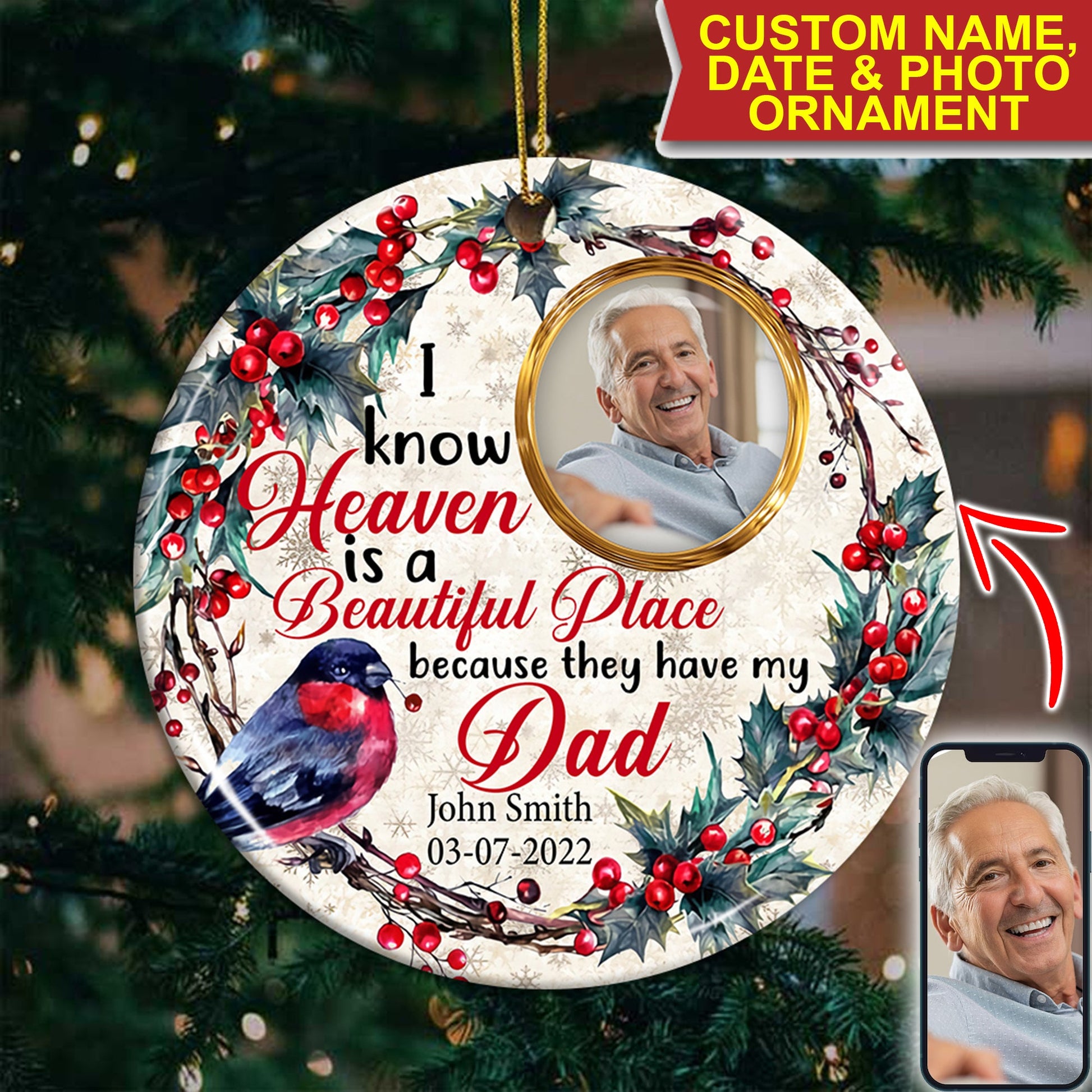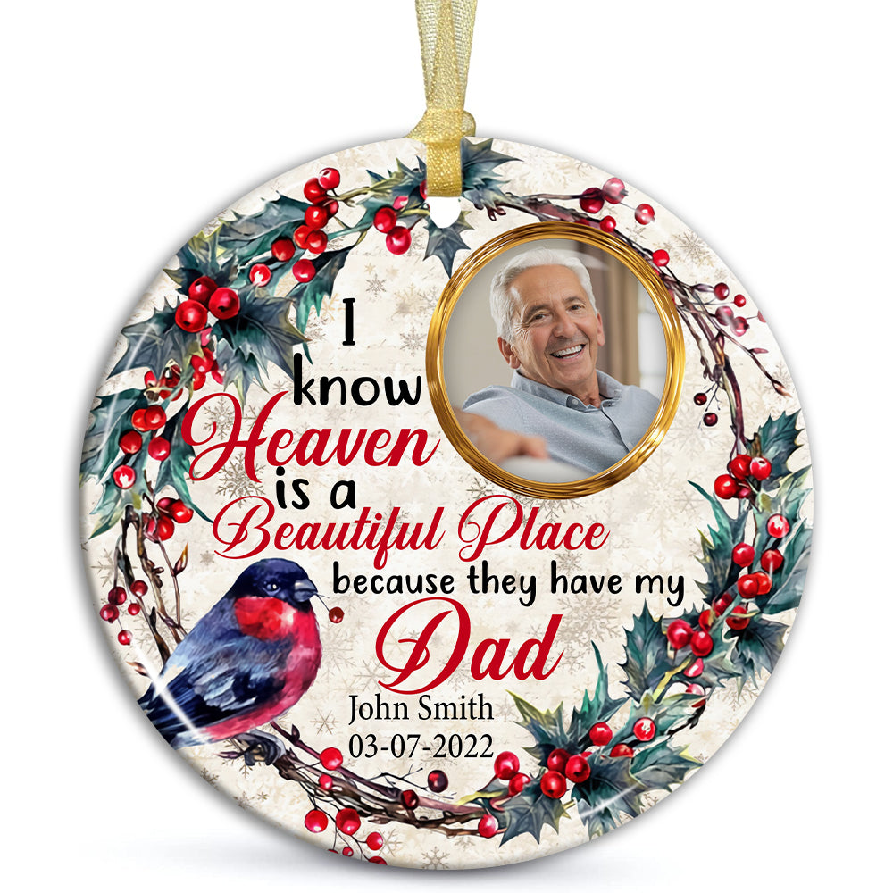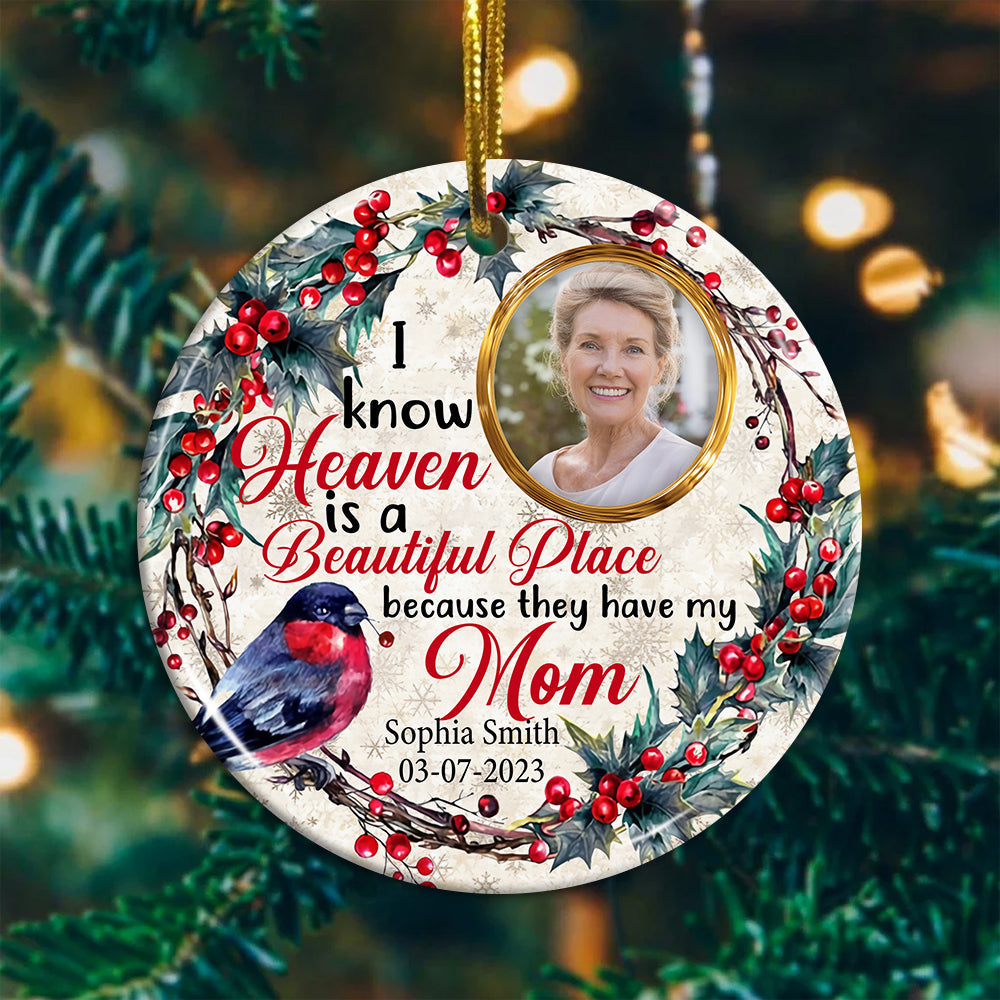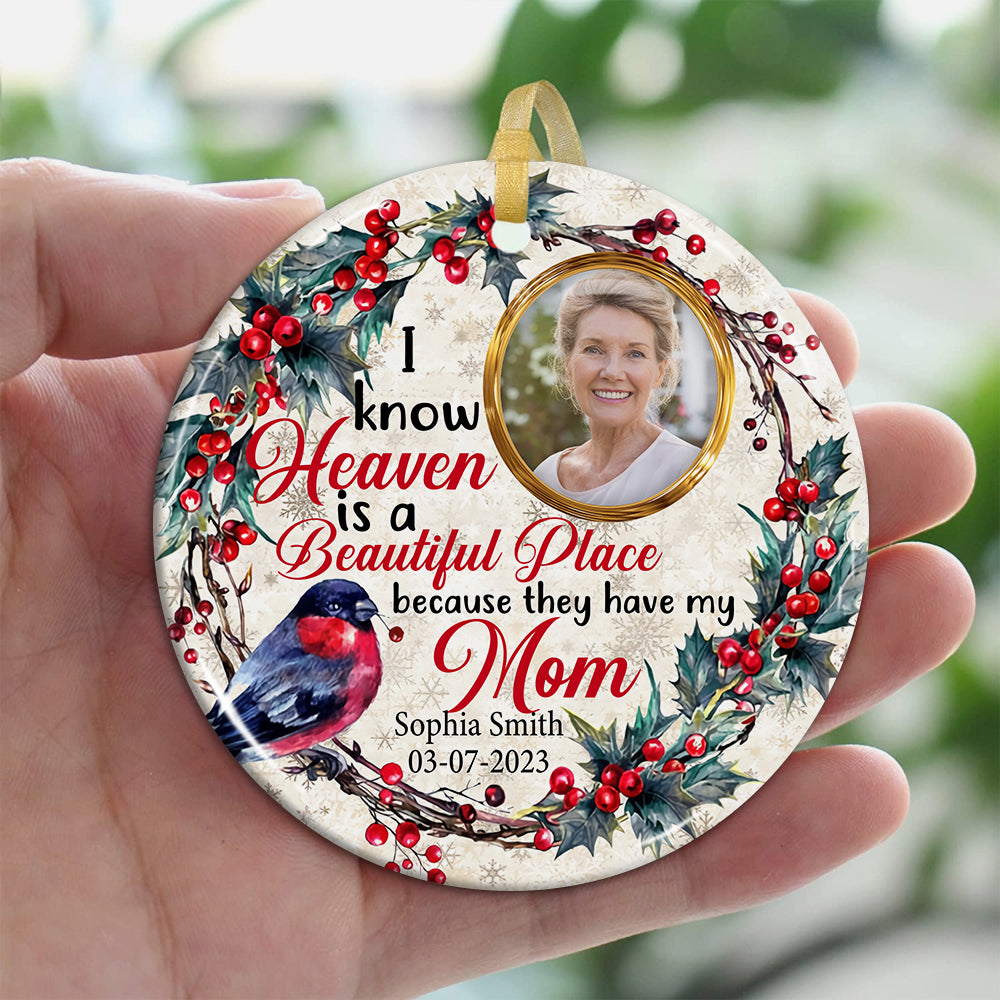 I Know Heaven Is A Becautiful Place - Personalized Photo Ceramic Ornament - Gift For Christmas, Memorial Gift
