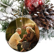 I Love You To The Moon And Back, Snowman - Custom Photo And Names- Personalized 2 Sides Ceramic Ornament - Gift For Family, Memorial Gift