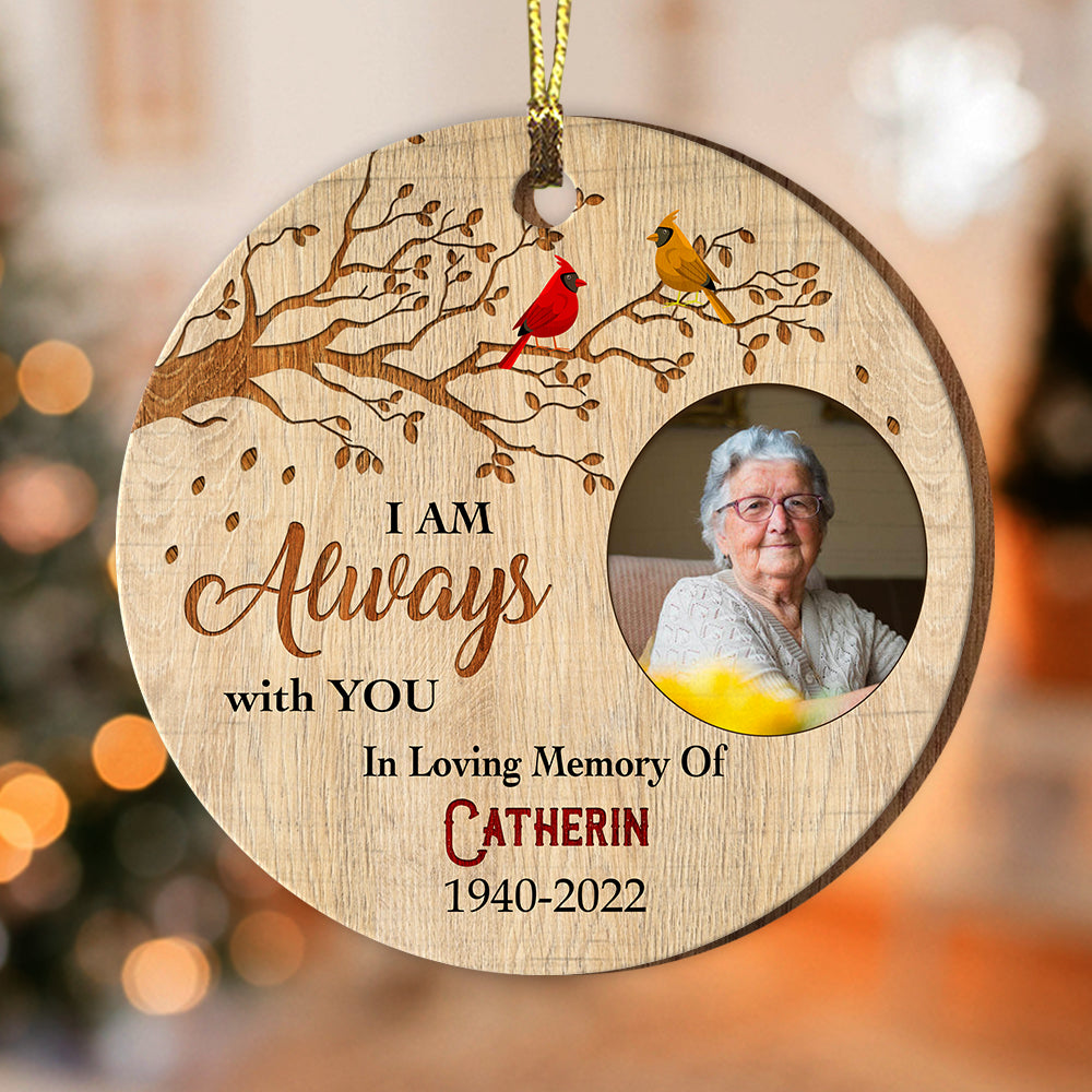 I'm Always With You In Loving Memory - Custom Photo And Name - Personalized Custom Shaped Wooden Ornament, Memorial Gift, Gift For Family