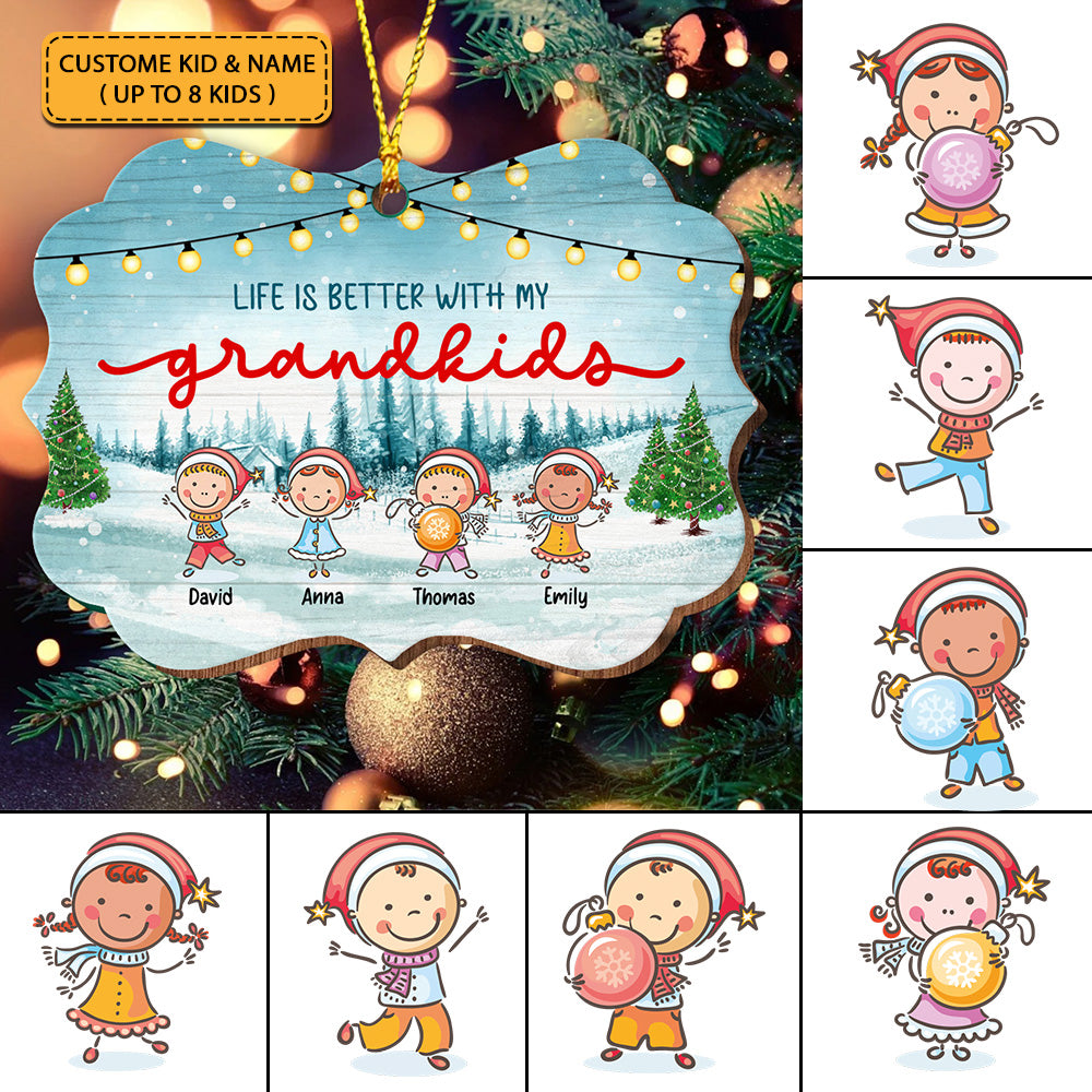 Life Is Better With My Grandkids - Custom Name - Personalized Custom Shaped Wooden Ornament, Memorial Gift, Gift For Family
