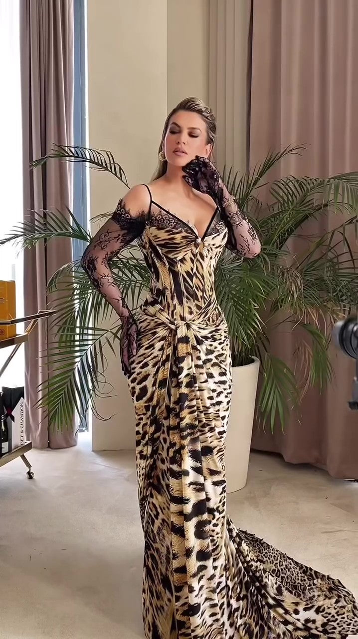 A duo of sexiness and elegance, all in this lace leopard print long dress. The wild leopard print and delicate lace collide to create sparks, outlining the graceful curves, making you stand out from the crowd and become the focus queen of the party.